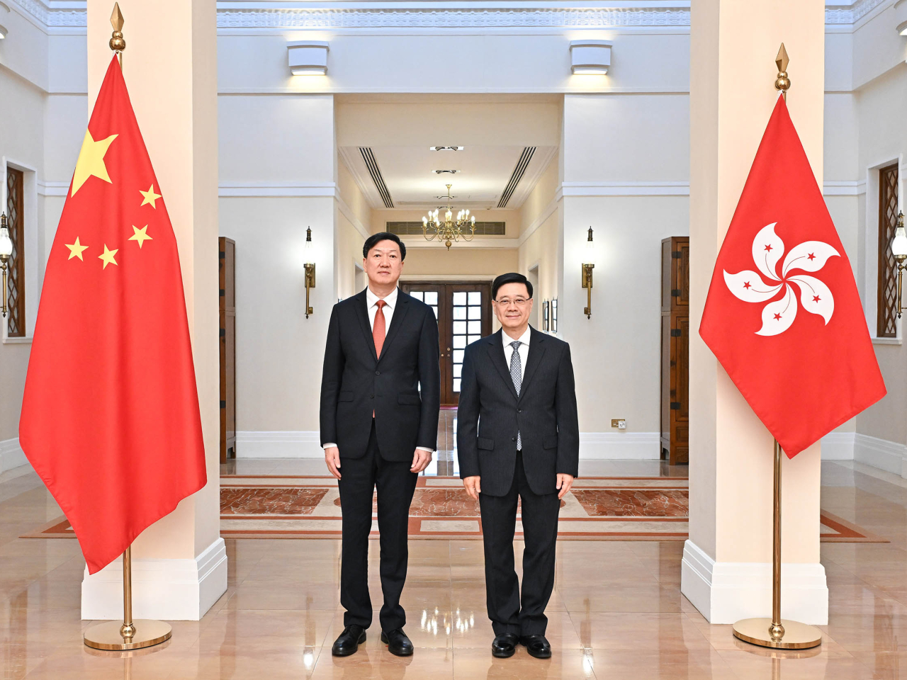 行政長官李家超與文化體育及旅遊局局長羅淑佩,在禮賓府與率團訪港的國家體育總局局長高志丹會面,就香港籌辦全運會的工作交流意見。