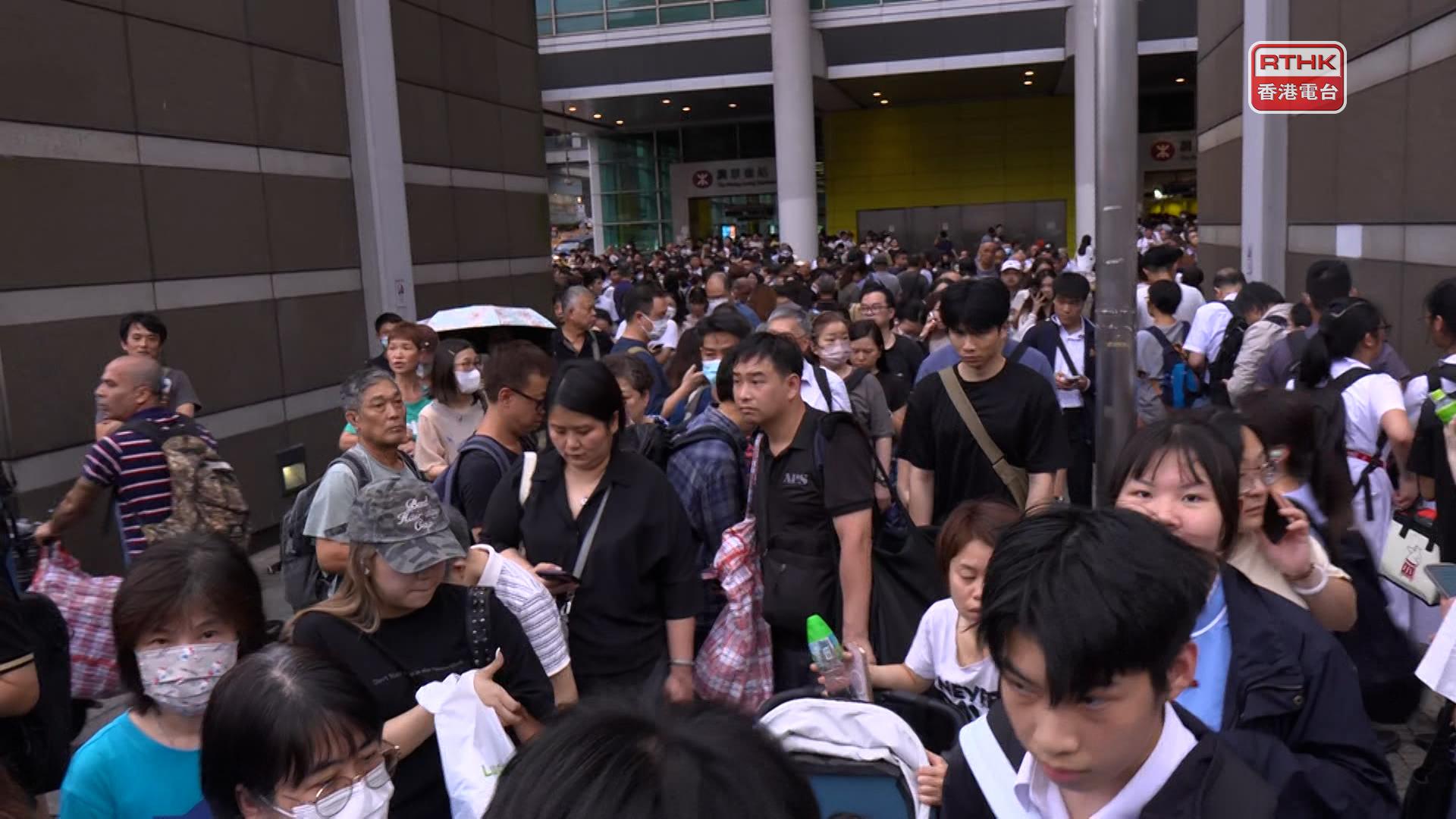 調景嶺站外大批市民等候。(鍾家銘攝)