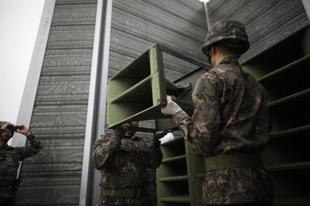 南韓軍方稱停止以擴音器向北韓喊話。(法新社資料圖片)