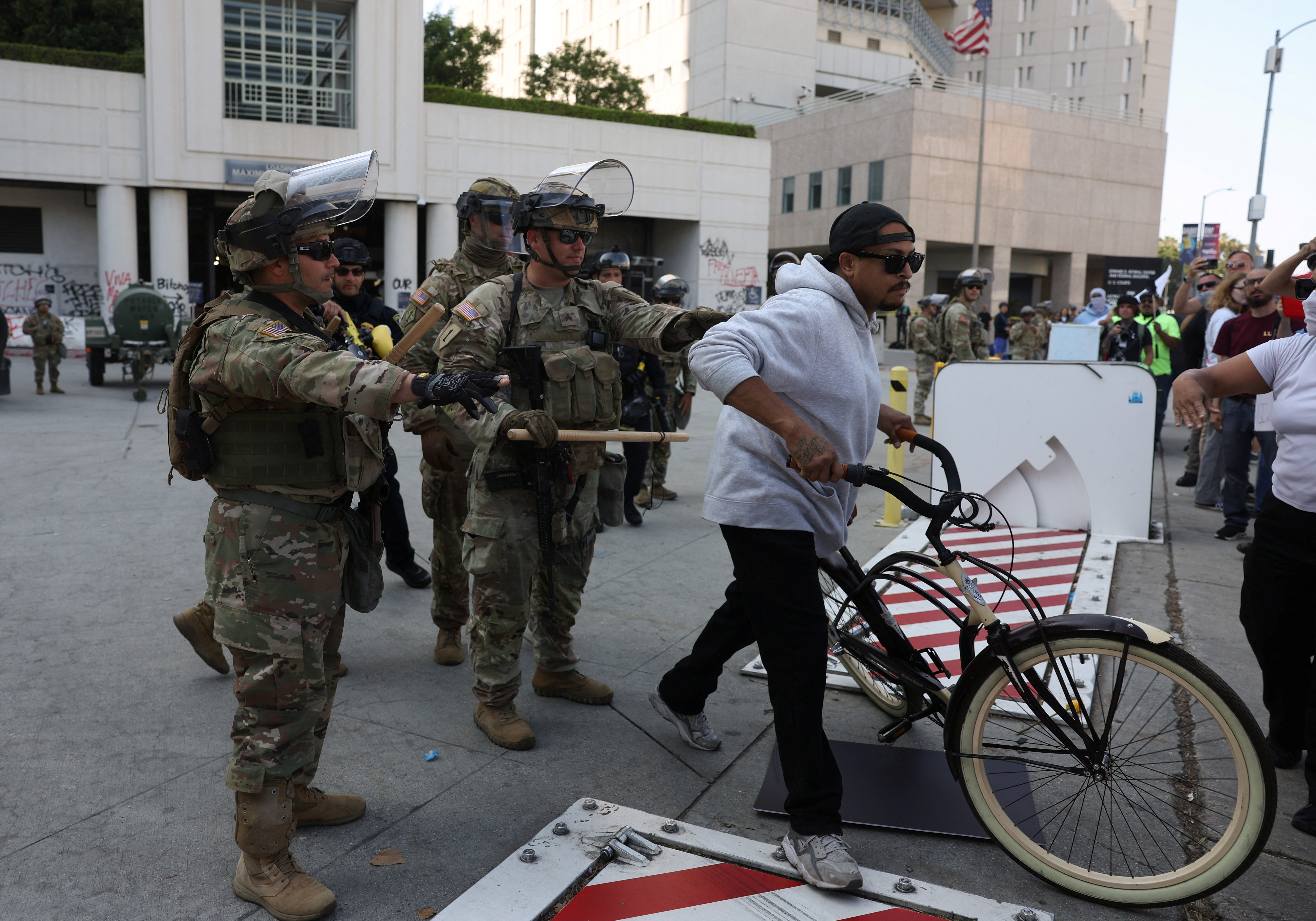 國民警衛隊隊員要求示威民眾離開。(路透社)