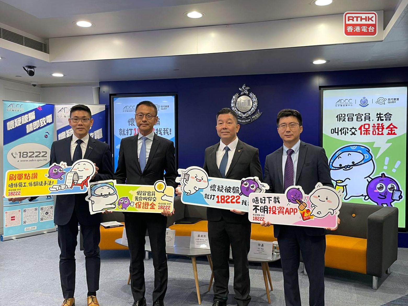 警方聯同金管局、青協及理大代表出席記者會,交代協助青少年加強防騙意識。(黃凱宜攝)