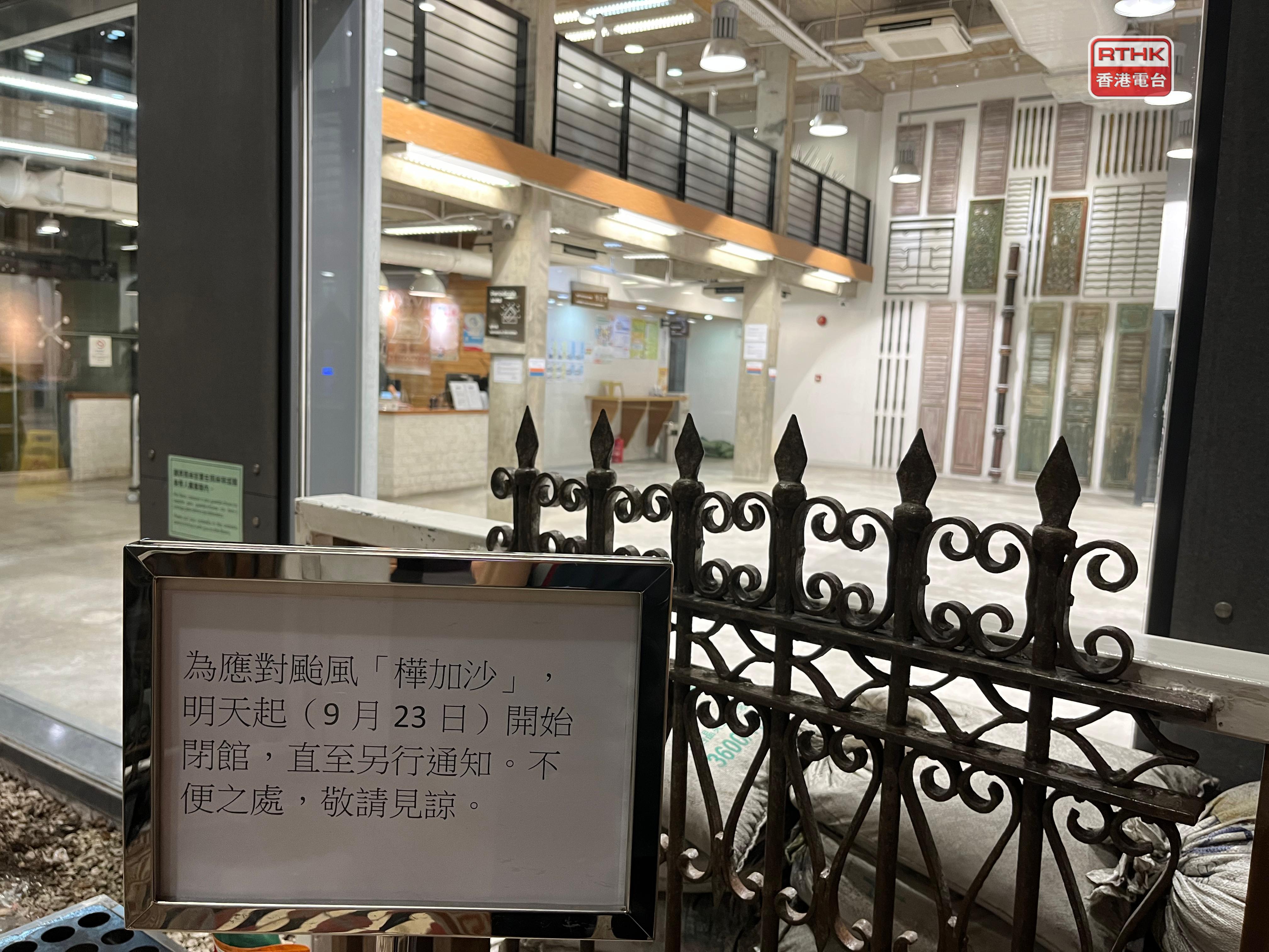 因應大機會出現水浸,澳門位於低漥區的公共圖書館,昨晚已清空地面層的閱讀區設施和圖書。(鄭月明攝)