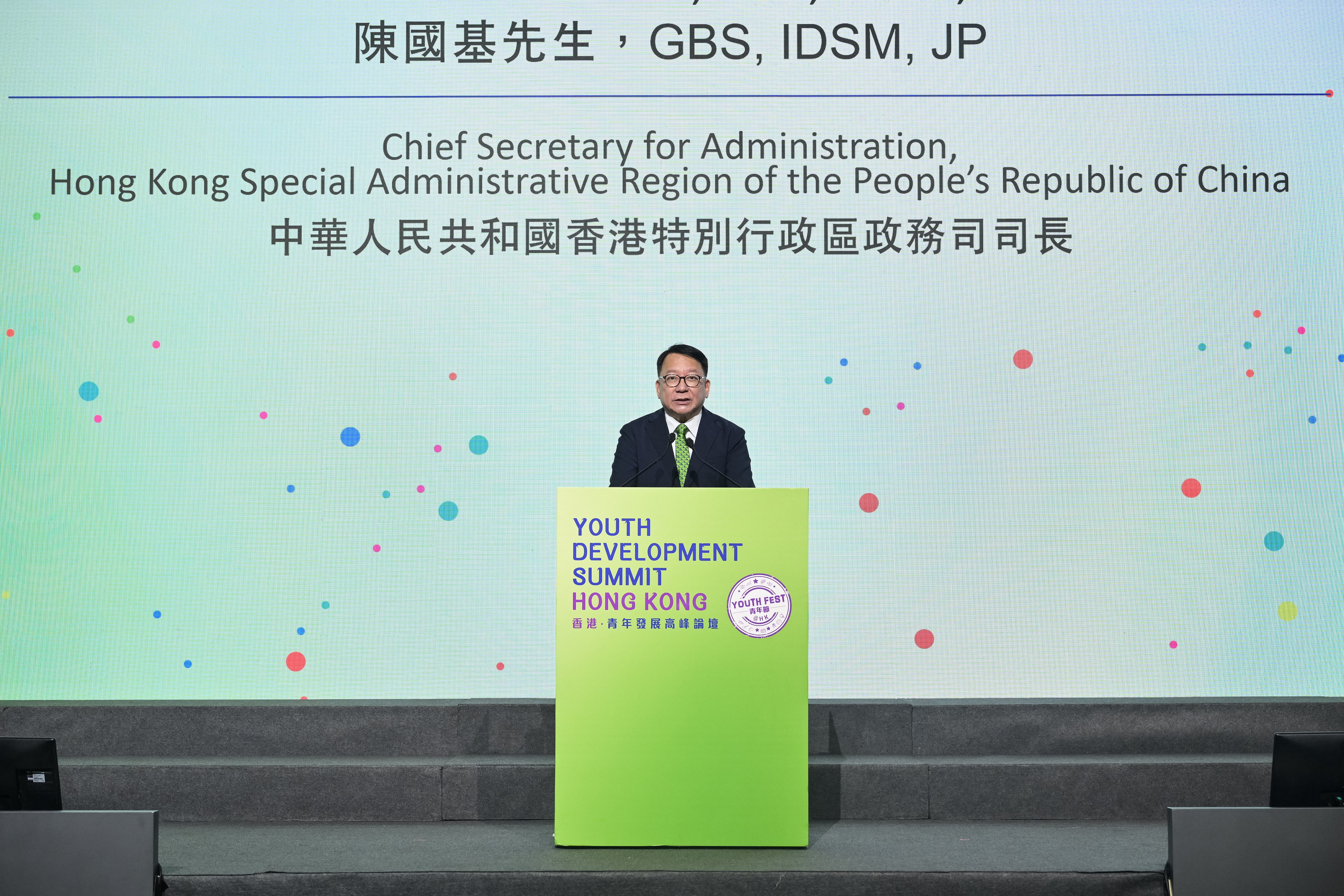 第二屆「香港.青年發展高峰論壇」在會展舉行,論壇以「聯通世界.跨越未來」為主題,政務司司長陳國基致開幕辭,表示今屆論壇比去年的規模大,超過3000名來自各地的青年領袖參與。特區政府重視青年發展,於2022年政府公布《青年發展藍圖》,勾劃對青年發展工作的理念,培育他們成為具備國際視野、正向思維、愛國愛港的新一代。