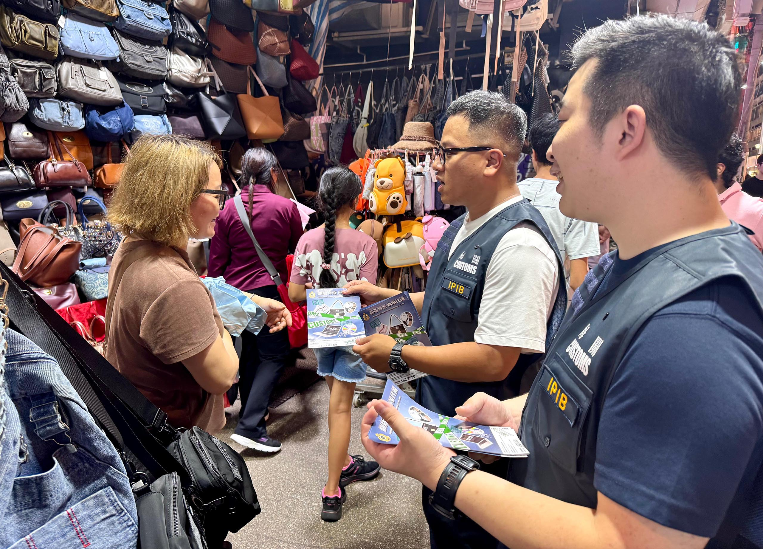 人員又會到陸路口岸和各區購物熱點派發單張,提醒旅客購物前要清楚貨品的規格,多作比較,光顧信譽良好的商戶;付款前要確定貨品的總價格和計價單位,購物後亦要保留單據及付款紀錄,若日後需要作出舉報,可作為憑證。如對貨品的真偽有懷疑,應先向有關商標持有人或其代理商查詢。