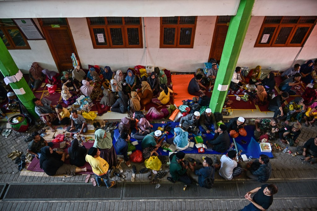 有失蹤學生的家屬在事故現場附近等候最新消息。(法新社)