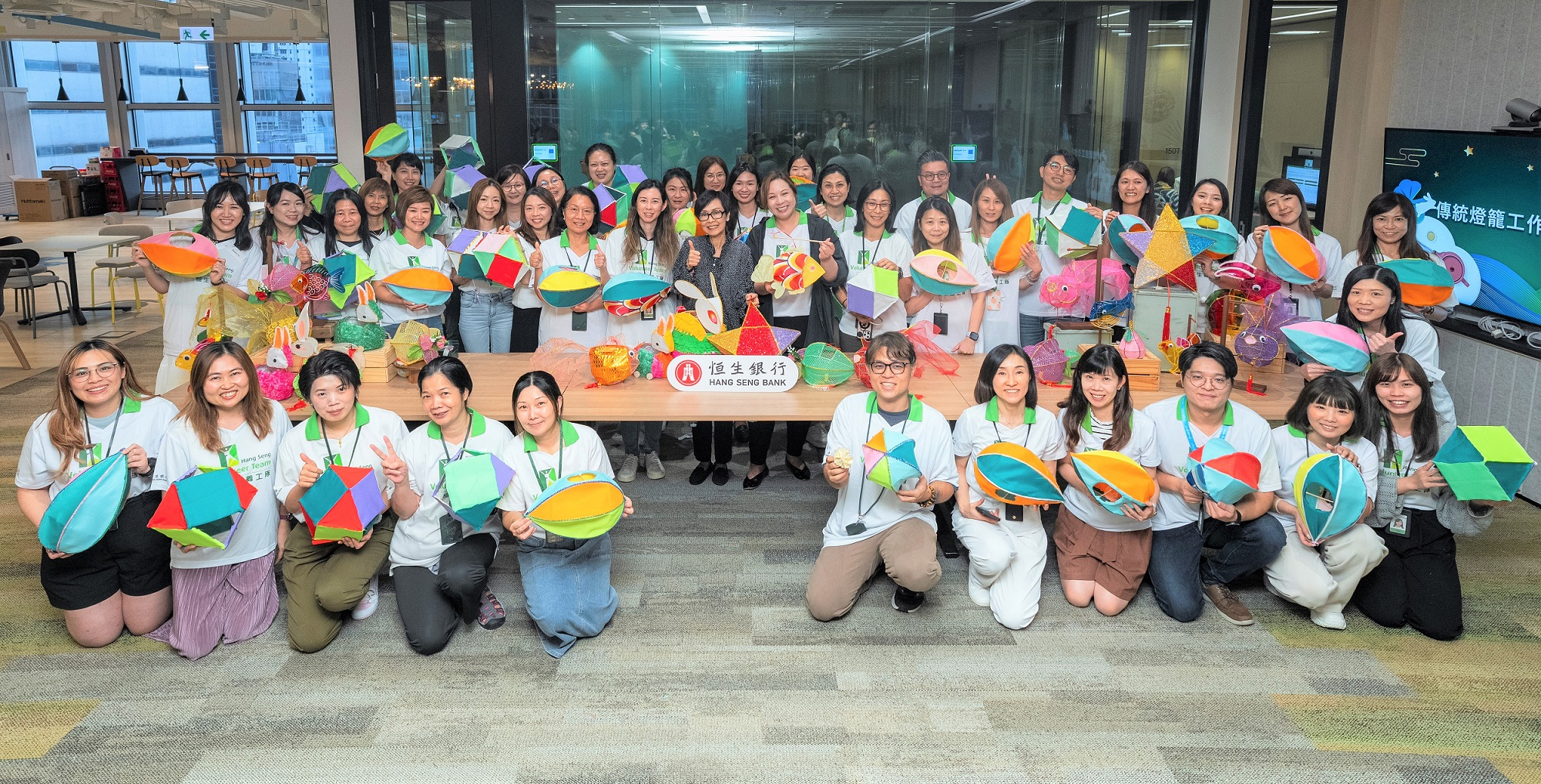 恒生銀行行政總裁施穎茵等高層,與約50名義工製作燈籠,在中秋茶聚送給樂善堂大埔「樂善村」過渡房屋的長者,傳遞關愛與節日溫暖。