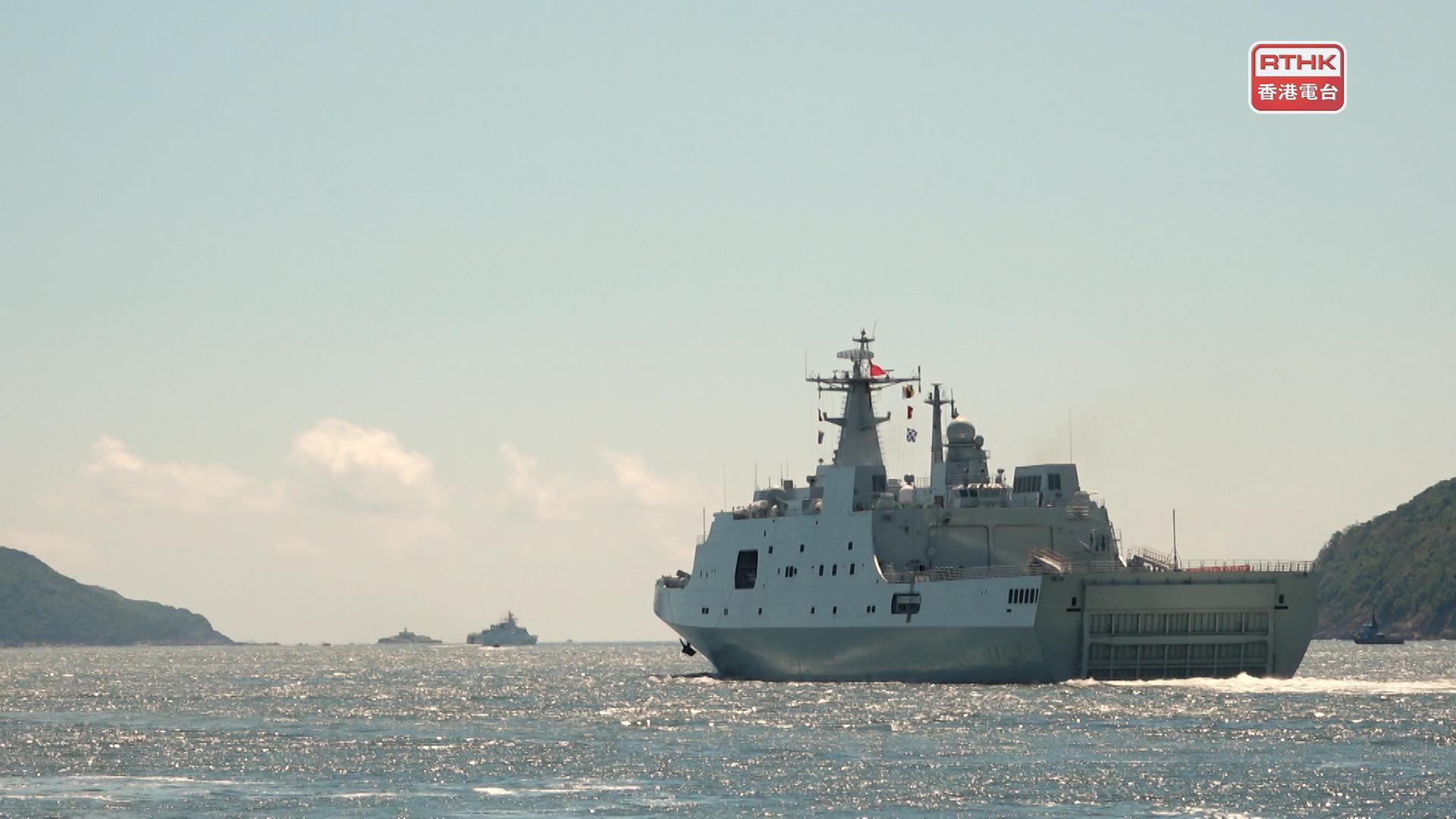 駐港部隊在昂船洲軍營碼頭舉行歡送儀式,軍艦編隊分區列隊人員向岸上送行人員揮手告別。兩隻艦艇之後依次駛離昂船洲軍營碼頭,維港沿岸有市民與屬艦官兵揮手告別。