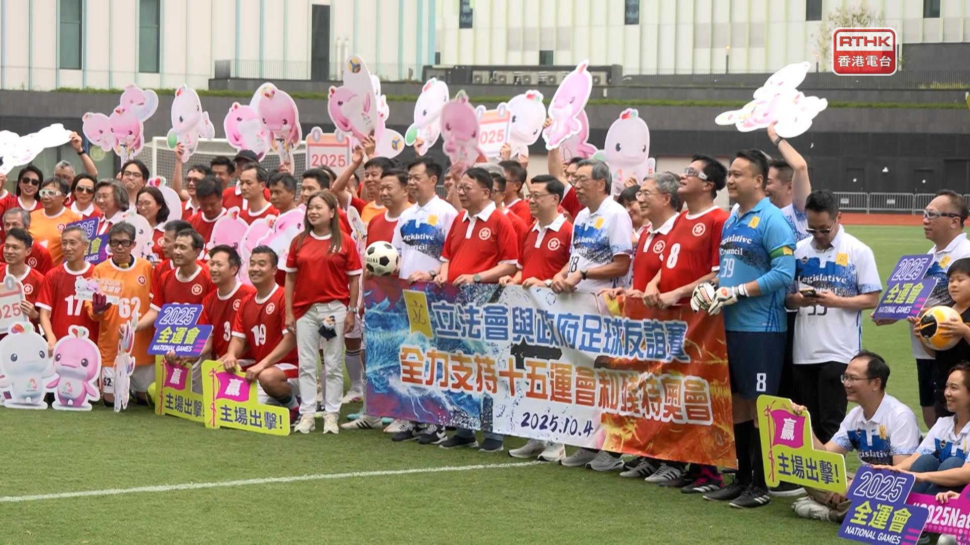 立法會足球隊與政府足球隊下午在啟德青年運動場進行友誼賽。行政長官李家超與立法會主席梁君彥將主持開球禮。