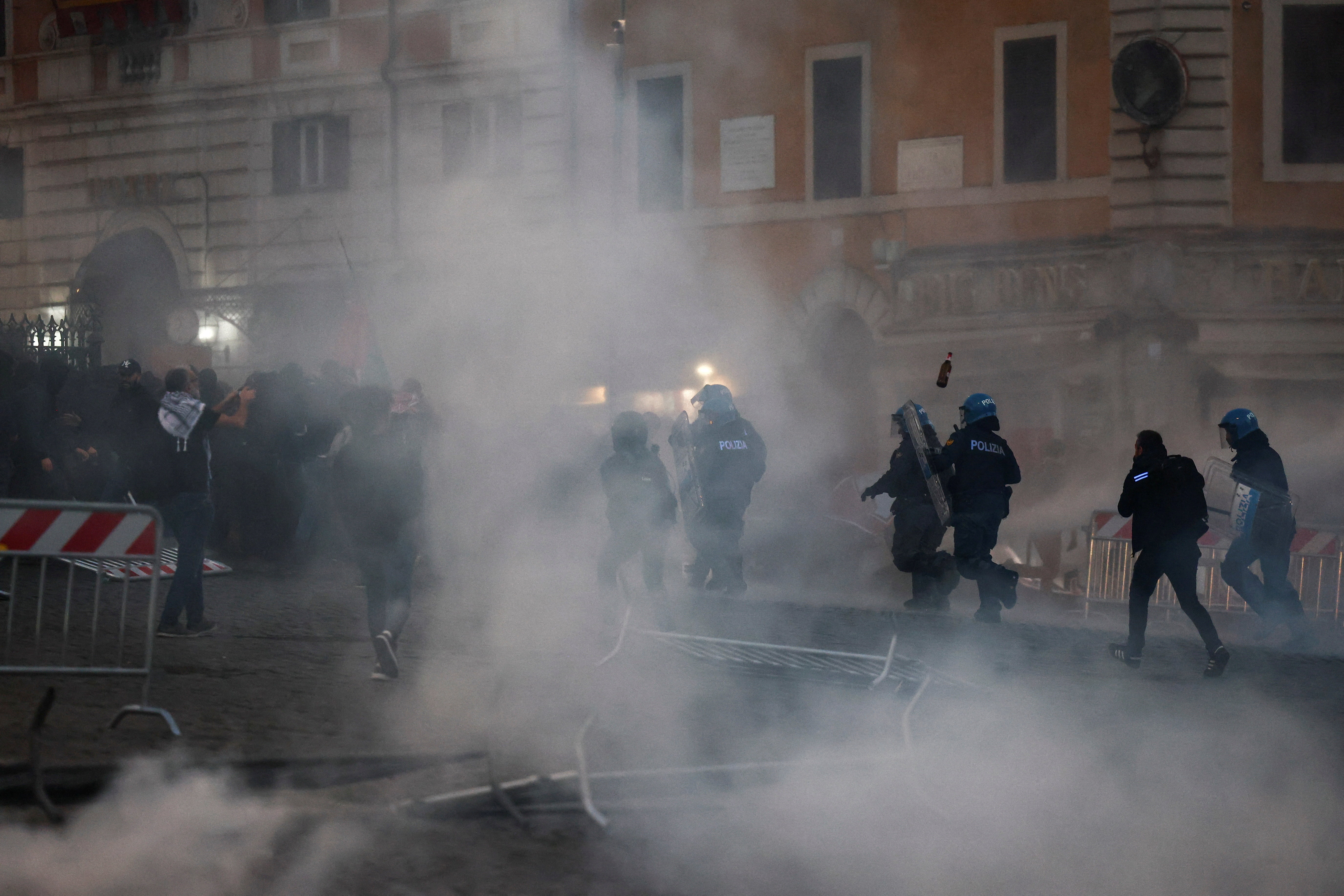 歐洲多國周末有數十萬人上街,抗議以色列攔截試圖向加沙運送援助物資的國際救援船隊並扣查船上人員,要求釋放他們及立即結束加沙戰事。其中意大利連續四日有民眾示威,羅馬有人懷疑向警員投擲酒樽,有示威者被制服。總理梅洛尼批評有示威者聲稱為了和平上街,卻在已故教宗若望保祿二世的雕像上塗鴉,行為可恥。