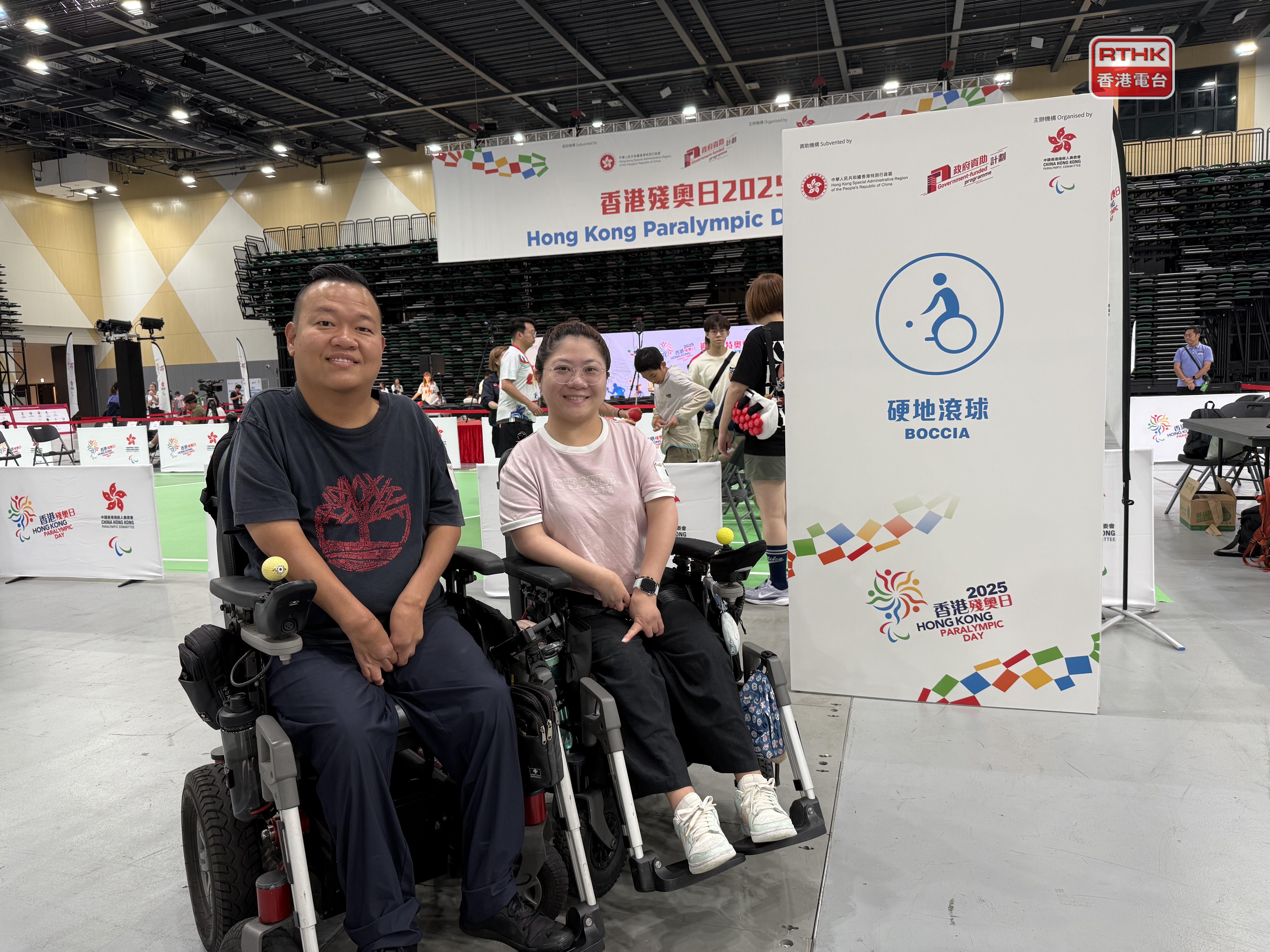 硬地滾球項目港隊代表梁育榮和張沅亦有到場。梁育榮說,活動有助市民認識殘疾運動,親身感受硬地滾球並非容易的項目,要長時間訓練累積一定技術。