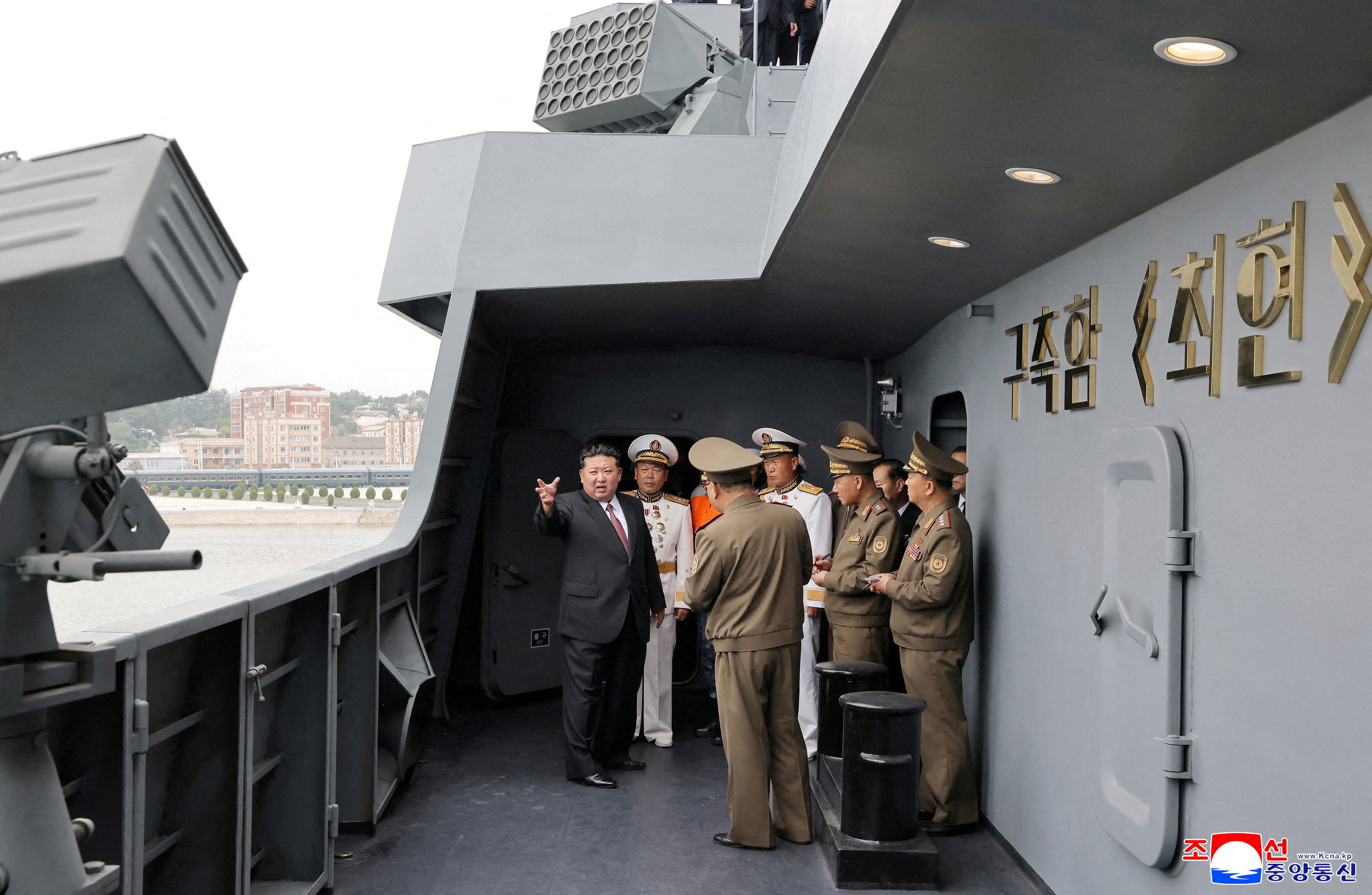 北韓朝中社報道,勞動黨總書記、國務委員長金正恩,昨日參觀武器裝備展覽會「國防發展2025」,登上海軍驅逐艦崔賢號參觀。