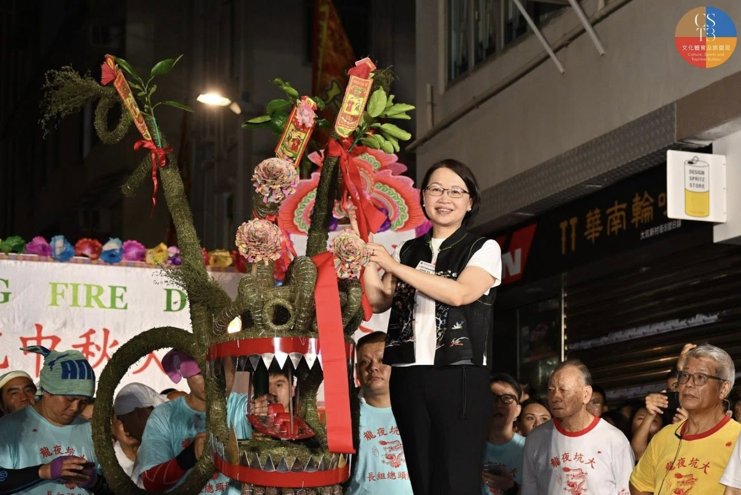 馮泳萍昨晚到大坑,與其他嘉賓一同主禮舞火龍盛會。(文體旅局社交網站)