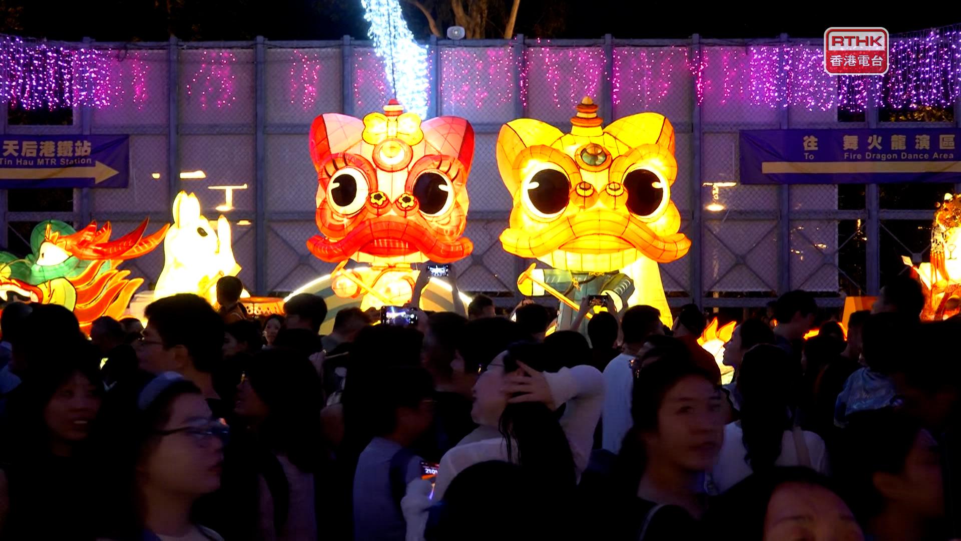 不少市民和小朋友手持燈籠,在花燈前拍照留念。有市民表示,大熊貓造型的花燈很有趣,亦有市民說,十五運會主題有特色,是今年較為特別的花燈。