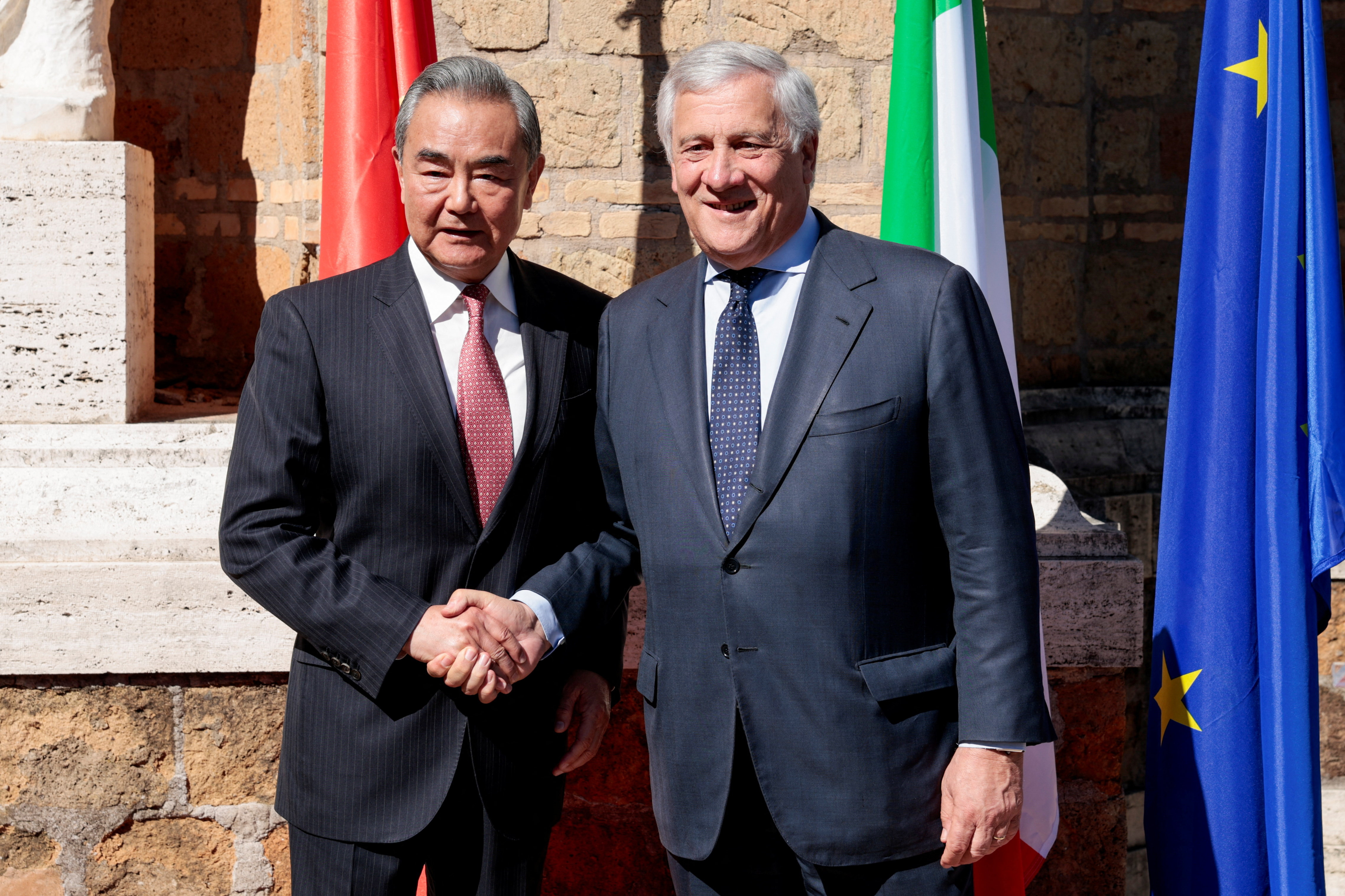 到訪羅馬的中共中央政治局委員、外長王毅,與意大利副總理兼外長塔亞尼出席中意政府委員會第12次聯席會議。