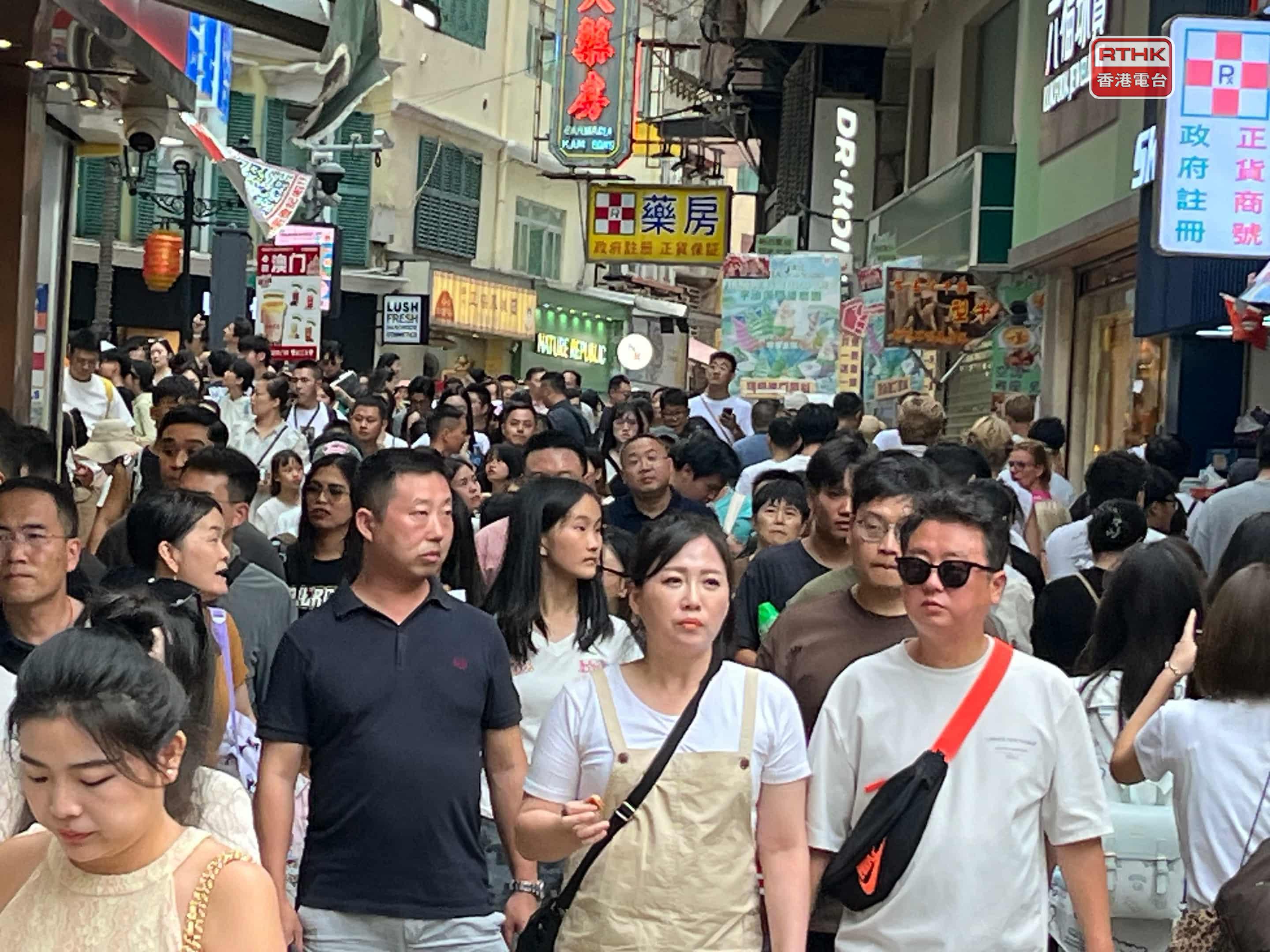 旅遊局公布,八日假期錄得114萬4000人次入境旅客,日均旅客量分別較去年和2019年國慶假期升1.9%和2.8%。當中內地旅客為94萬3000人次、香港旅客12萬8000人次,國際旅客和台灣旅客分別是5萬7000人次和1萬6000人次。與去年國慶假期比較,日均內地旅客量升大約一個百分點,有11萬8000人次,而日均國際旅客約7200人次,較2024年的5500人升幅近三成。