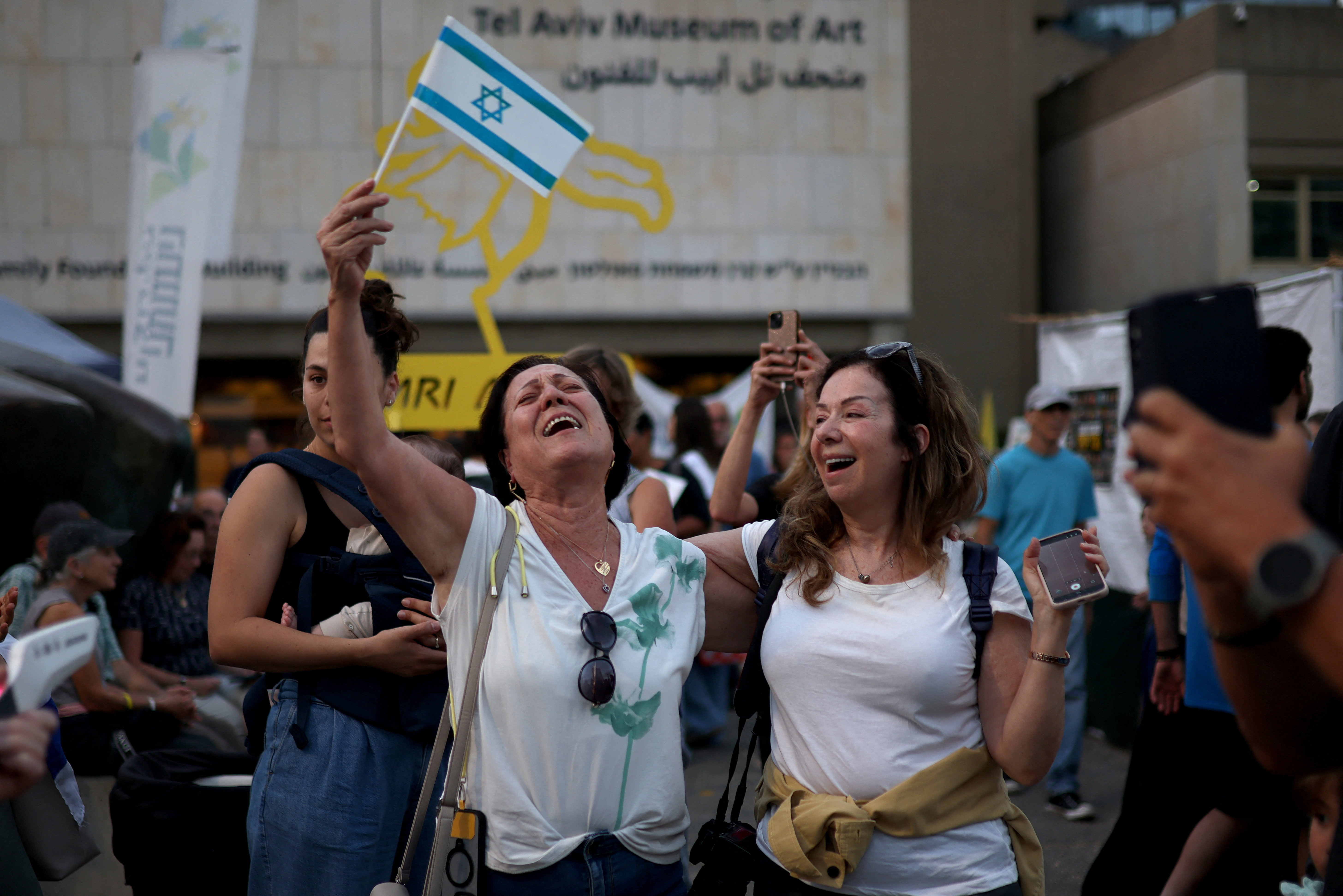 • 在特拉維夫,有民眾慶祝以哈雙方達成停火協議。(路透社資料圖片)