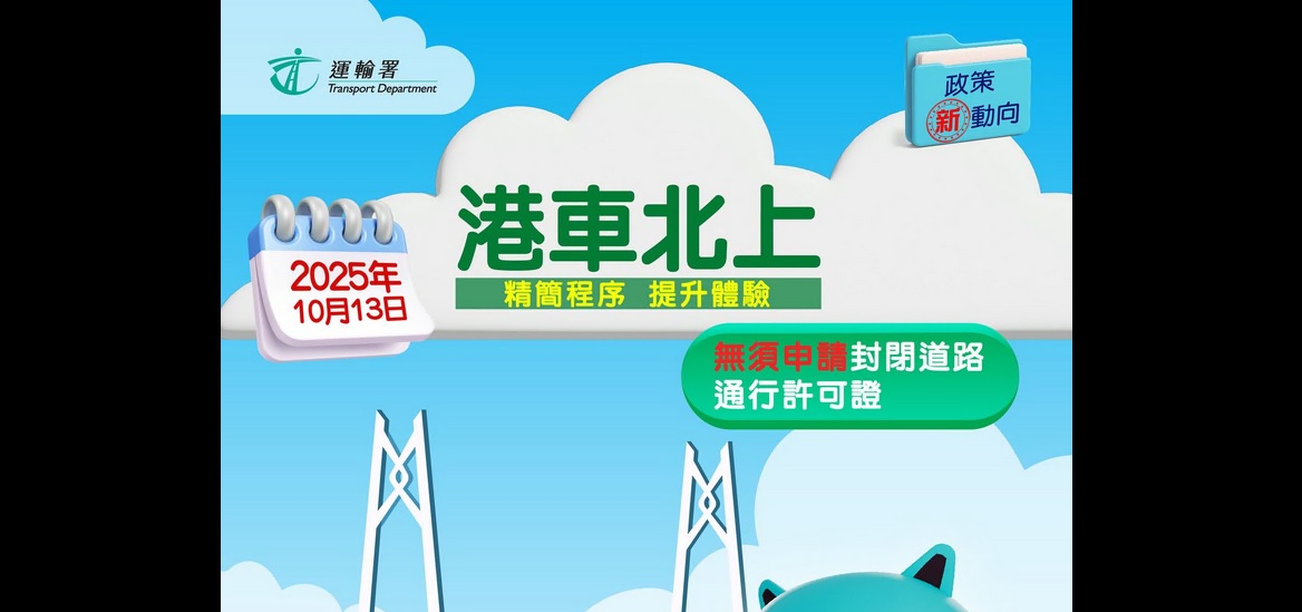 運輸署表示,《2025年道路交通(交通管制)(修訂)規例》上月十日完成立法程序,署方兩日後向「港車北上」續期申請人發電郵,提醒他們注意署方於十月刊憲公布豁免申請封閉道路通行許可證的生效日期和詳細安排。署方在電郵中亦建議當時申請續期的人士,只申請有效期一個月的許可證作為臨時措施,配合出行需要。