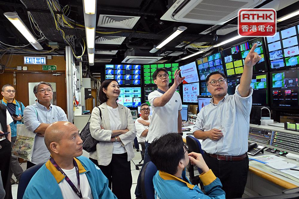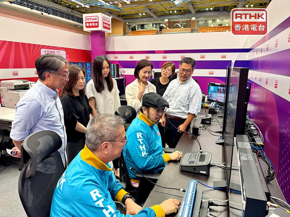 廣播處長關婉儀昨日視察各項創新技術的設備裝置,確保配置妥當,為直播工作做好準備。她表示,在政府撥款支持下,港台得以提升「智慧廣播」 能力,做好全運會直播及節目製作的工作。