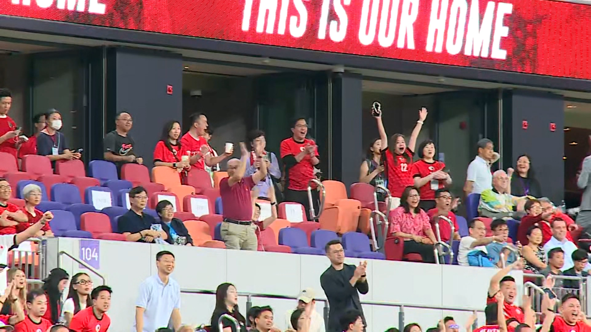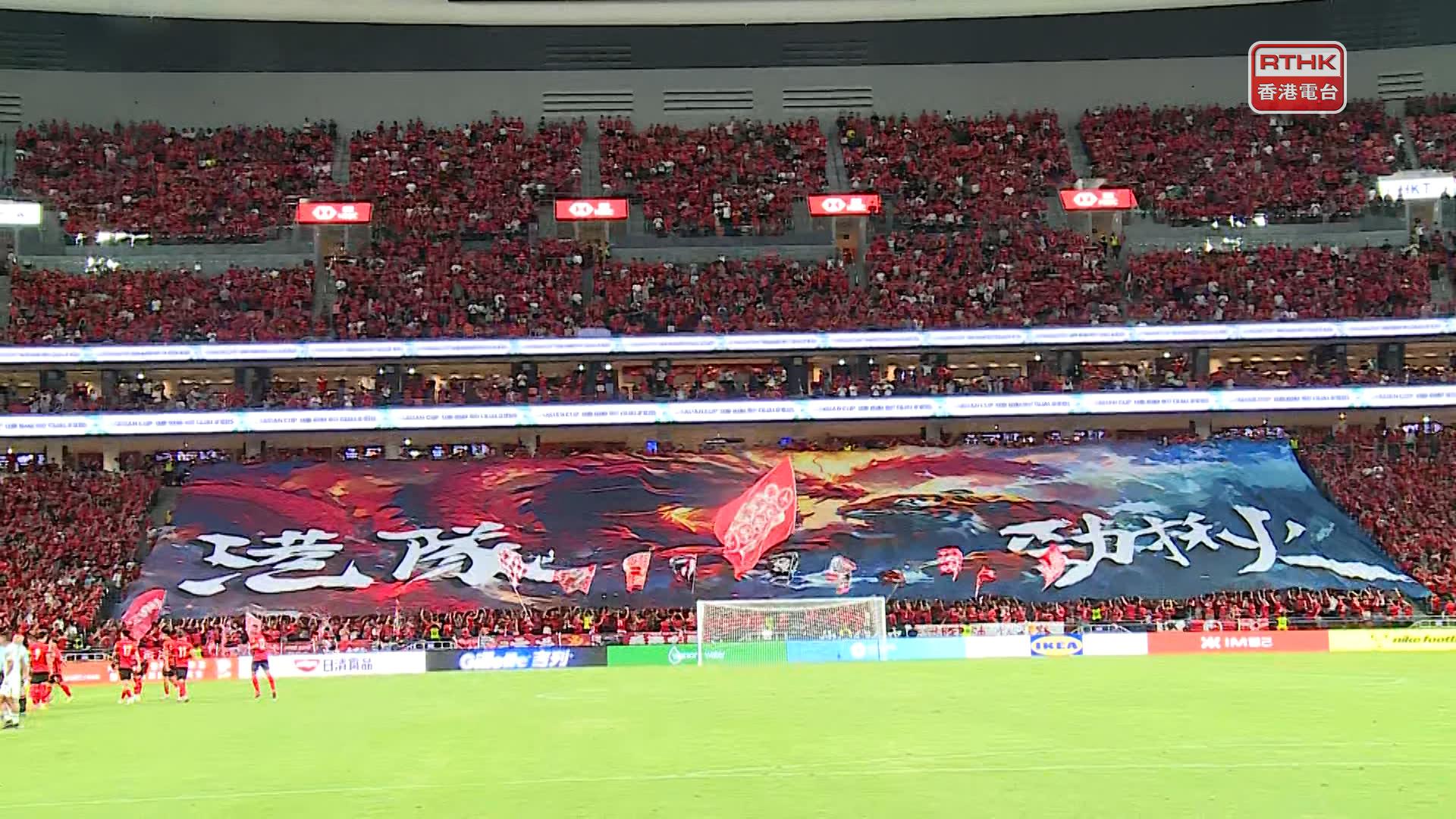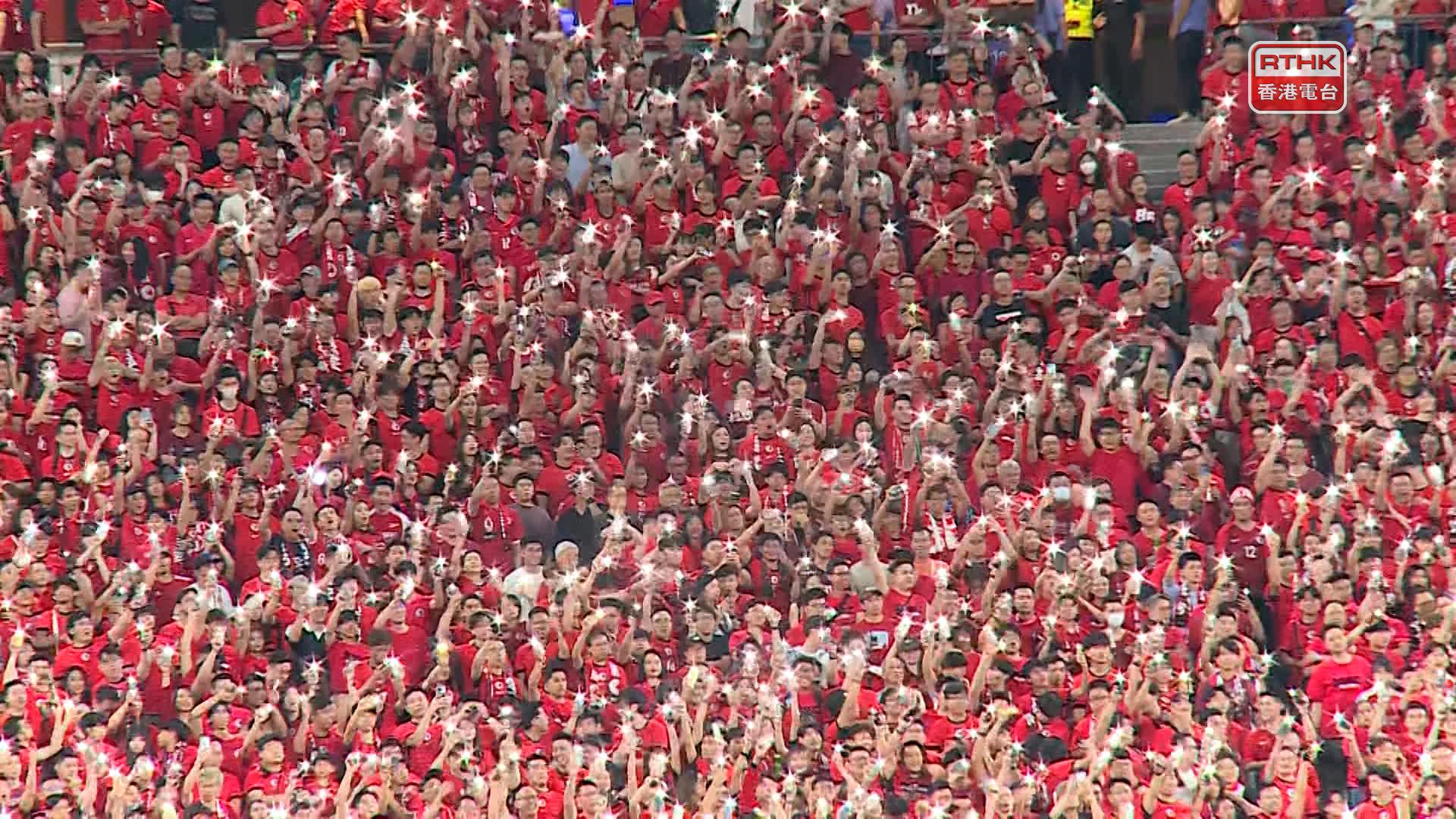 賽事吸引大批球迷入場,大部分穿上紅色港隊球衣,現場一片「紅海」。文化體育及旅遊局局長羅淑佩亦有到場,開賽前看台展示印有「港隊勁揪」的「巨龍鬥老虎」巨型橫幅。