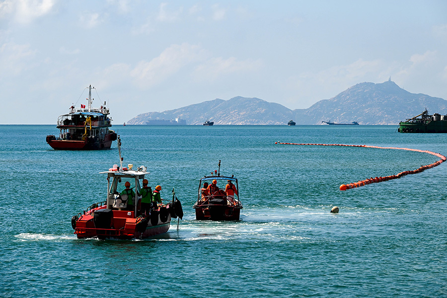 多個政府部門在南丫島下尾灣對開海面舉行周年海上污染事故聯合演習,測試相關部門在發生海上溢油及溢漏有害有毒物質事故時的應變能力。