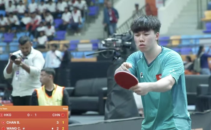 新星陳顥樺緊接上陣,挑戰「世一」王楚欽,開局一度領先10:8,但王楚欽連追4分以12:10先拔頭籌,第2局以11:9再下一城。落後0:2的陳顥樺第3局採取主動,正手搶攻頻頻得手,以11:5扳回一局,第4局把王楚欽迫至「刁時」,最終以12:14飲恨,輸局數1:3。