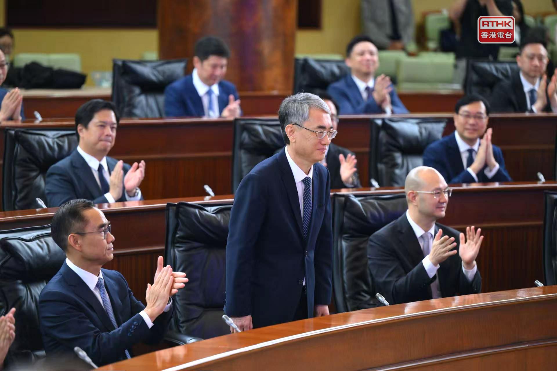 張永春以全數33票當選下屆立法會主席,並即時起立謝票。(鄭月明攝)
