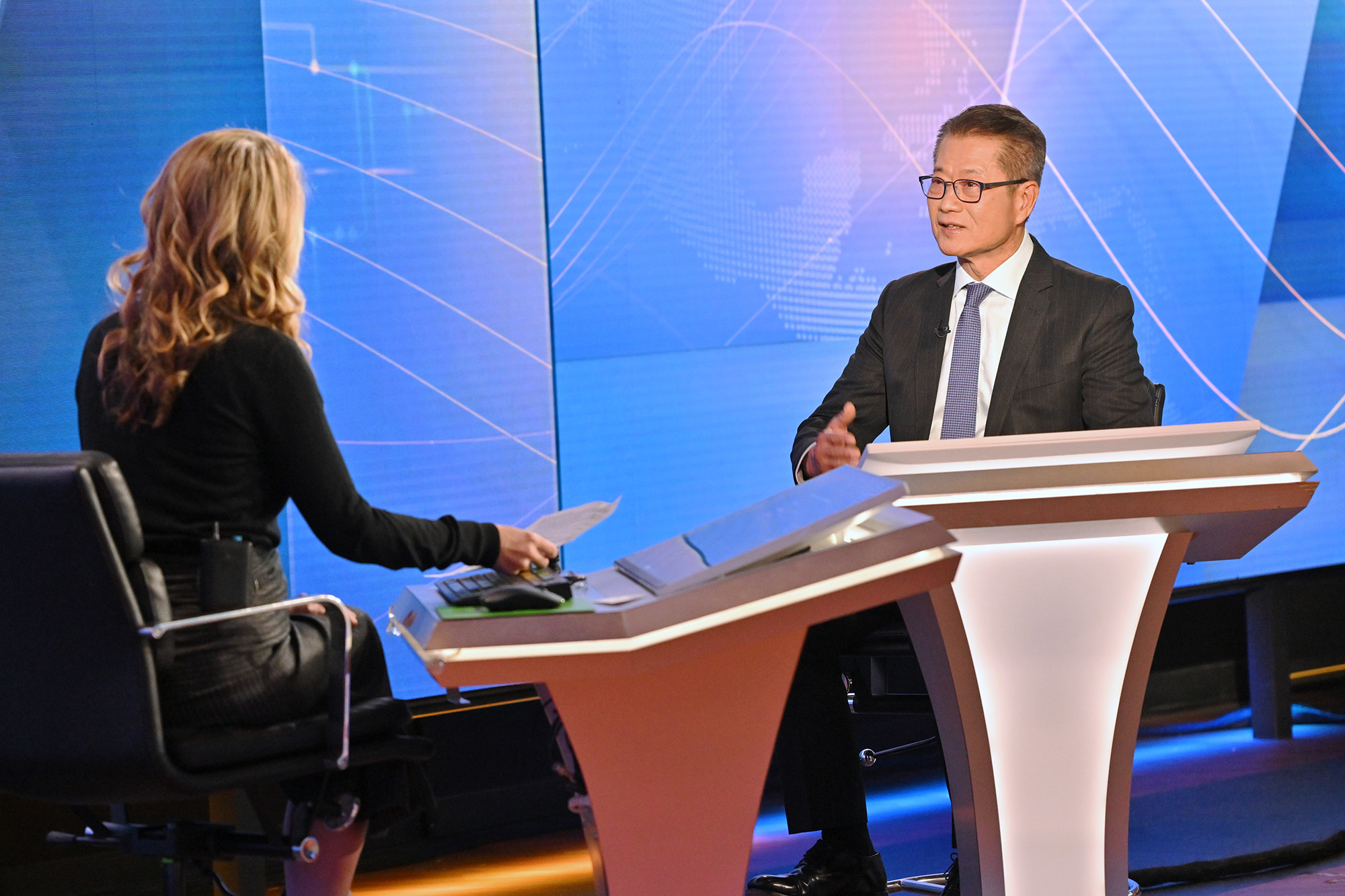 陳茂波離開紐約前接受彭博社專訪。(政府新聞處)