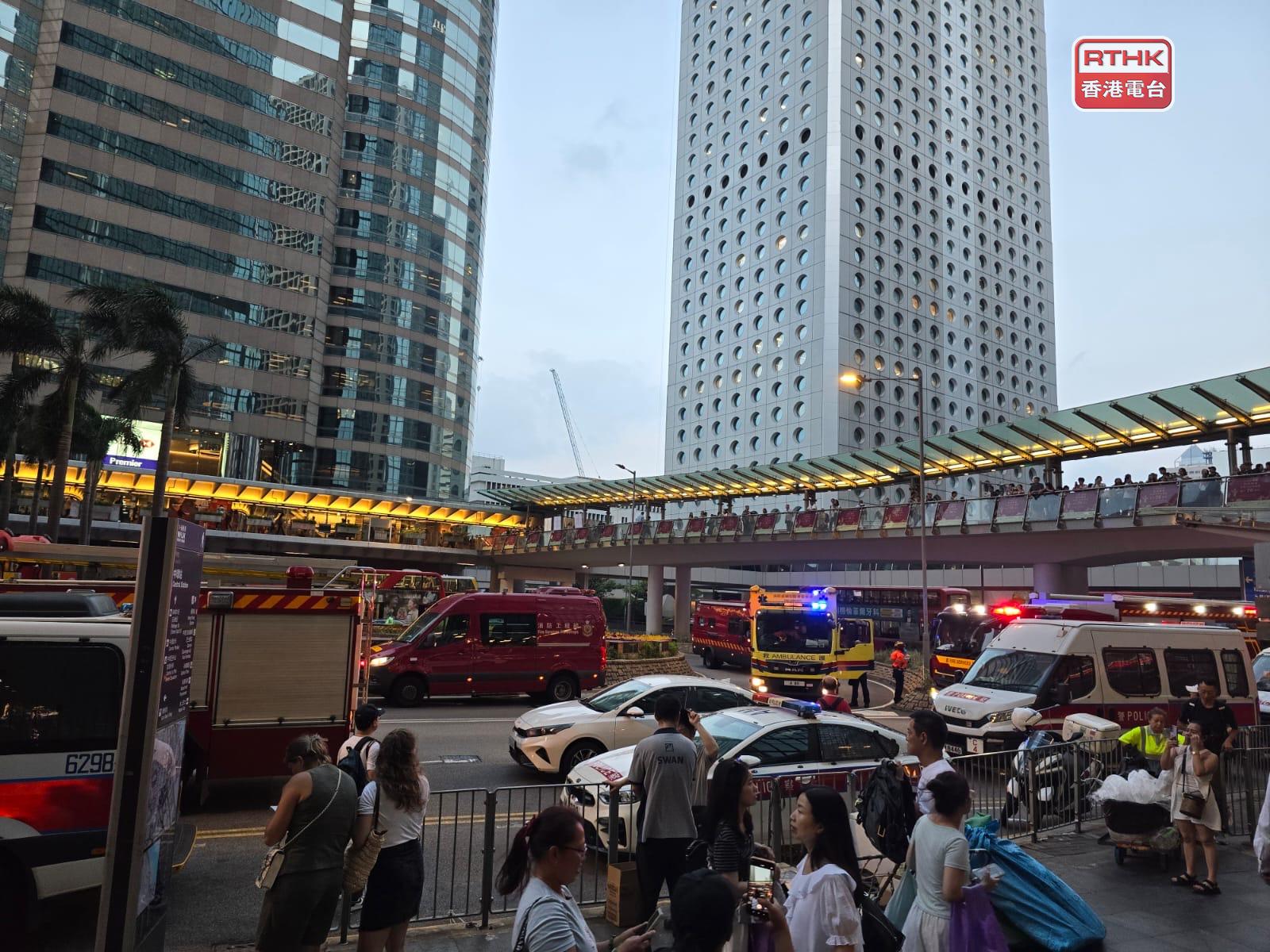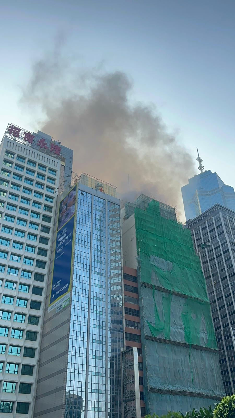 中環華懋大廈有棚架起火,消防將火警升為三級。初步有1男1女送院,兩人清醒。