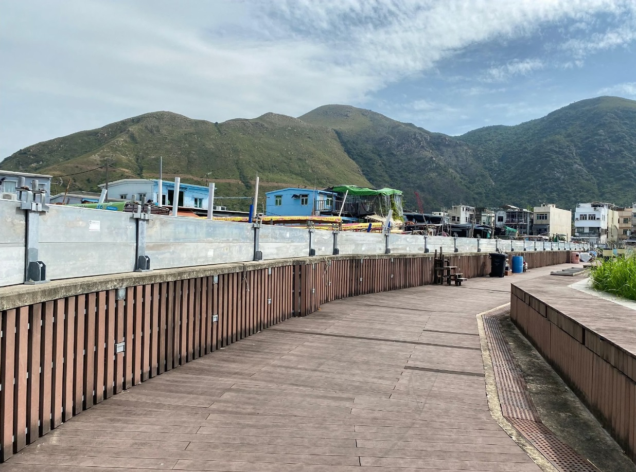 渠務署表示,已在大澳安裝可拆式擋水板。(渠務署社交網站圖片)