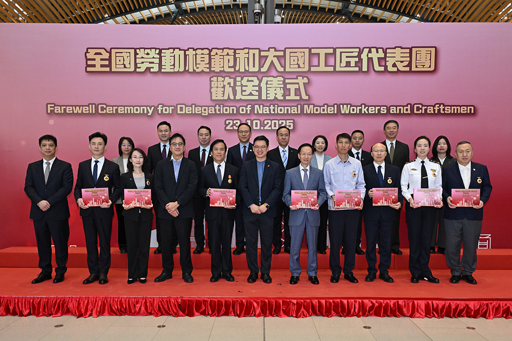 勞工及福利局副局長何啟明在歡送儀式上衷心感謝代表團訪港,讓香港市民感受全國勞動模範卓越貢獻及崇高精神,進一步體會工匠精神的深刻內涵。他表示,代表團成員的專業素養、豐富經驗及對工作的熱忱,為香港市民,尤其是年輕一代,帶來深刻的啟迪與鼓舞。
