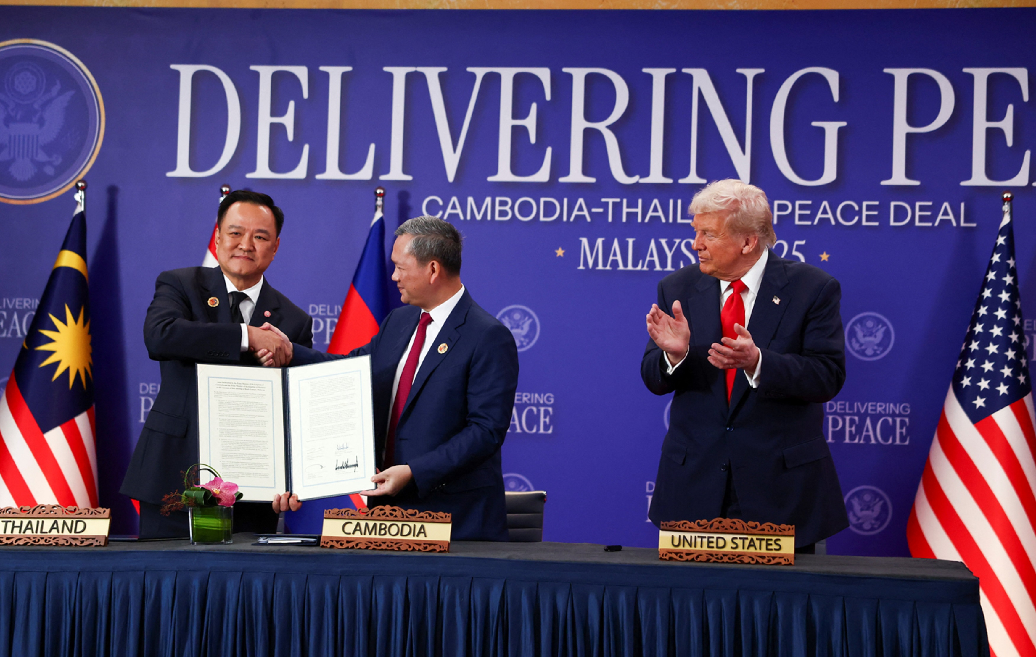 到訪馬來西亞的美國總統特朗普,見證泰柬兩國領導人簽署這份被傳媒形容為加強版的停火協議。