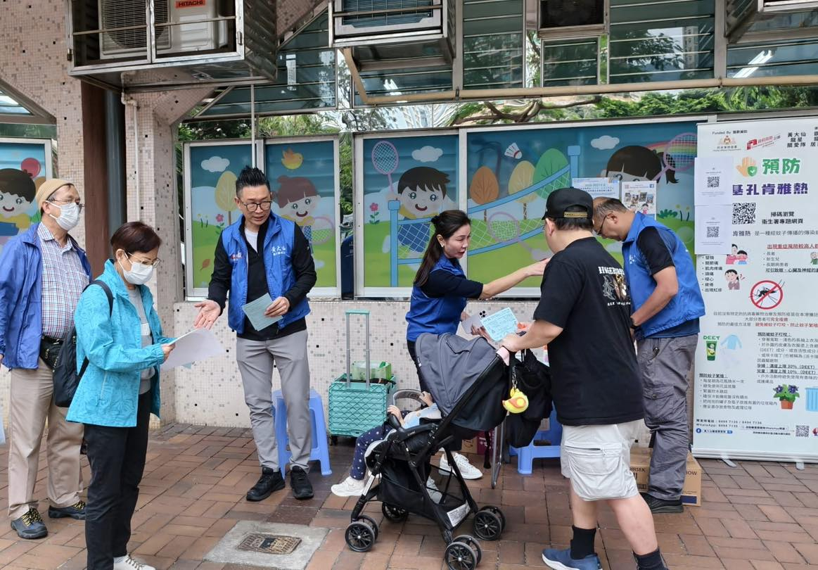 麥美娟在社交專頁表示,黃大仙民政事務處已啟動應急機制,聯合關愛隊配合衛生防護中心,開展防疫宣傳工作。區內多支關愛隊響應,隊員們逐戶走訪居民、設立資訊站,講解基孔肯雅熱的症狀特徵和預防措施,解答居民疑問,並在社區內張貼海報、將宣傳單張投入住戶信箱。