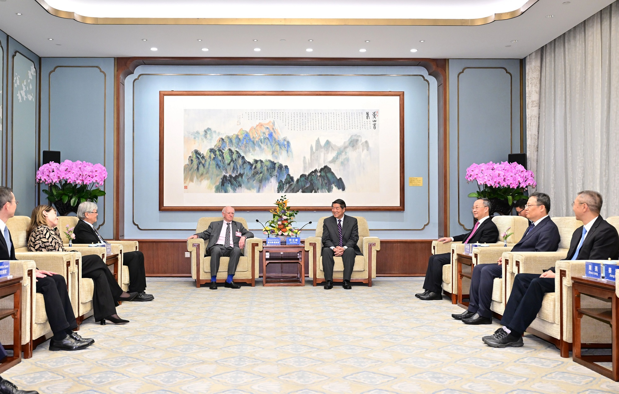 何立峰在釣魚台國賓館會見金融監管總局國際諮詢委員會委員。(新華社)