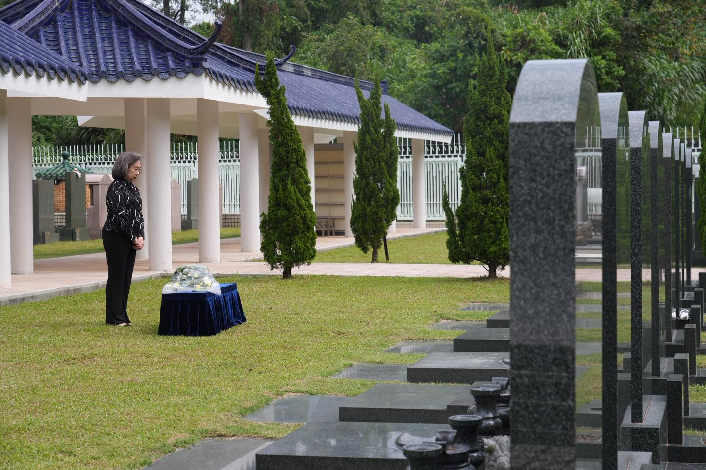楊何蓓茵較早時代表特區政府到浩園悼念因公殉職的公務員,向逝者獻上鮮花。(楊何蓓茵社交網站圖片)
