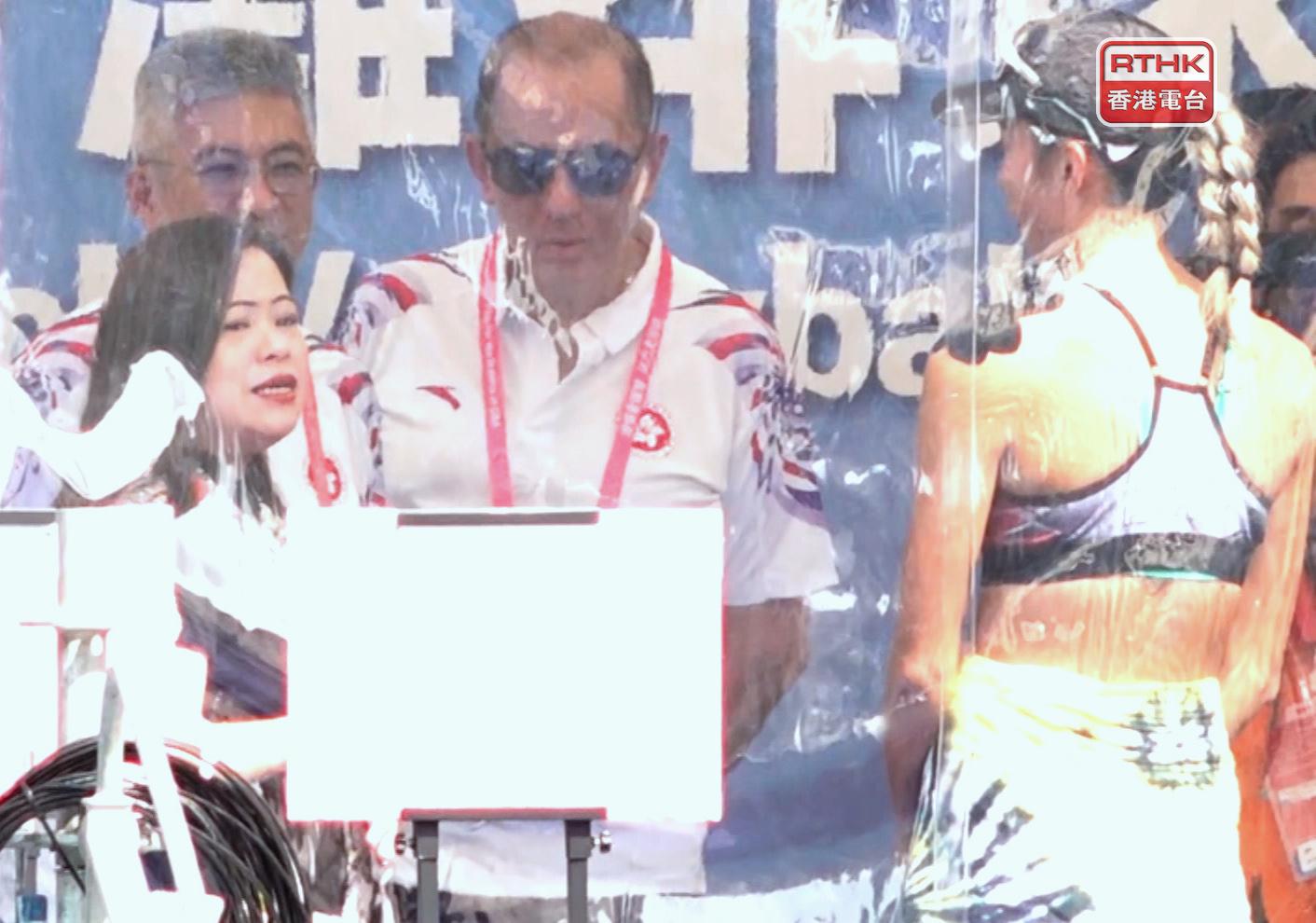 十五運會香港賽區首個競賽項目沙灘排球比賽,在銅鑼灣維多利亞公園展開。文化體育及旅遊局局長羅淑佩中午到場,與港隊女子沙排運動員交談。