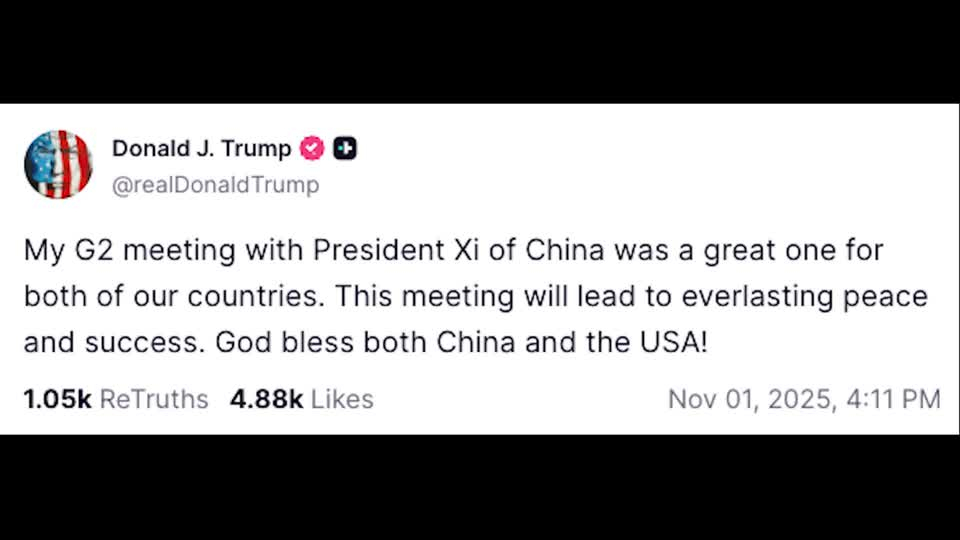 中國暫停稀土出口管制為期一年,並同意暫停自3月4日以來宣布的所有報復性關稅措施,包括對美國雞肉、小麥、玉米、棉花、高粱等產品加徵的關稅,以及某些美國企業列入中國政府的不可靠實體清單。