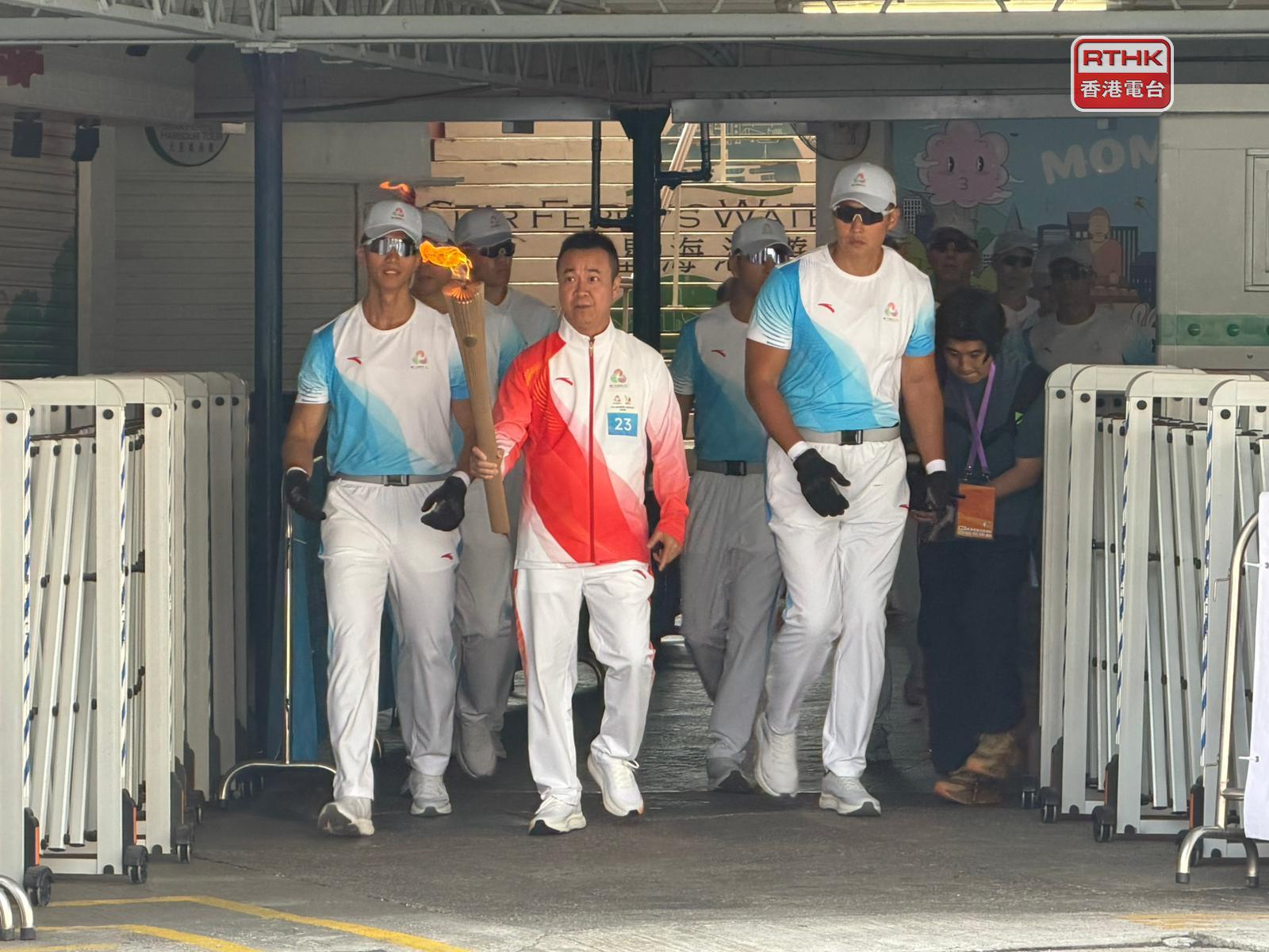 十五運會火炬接力傳遞在粵港澳三地只四個城市同步舉行,其中香港賽區有50名火炬手參與。