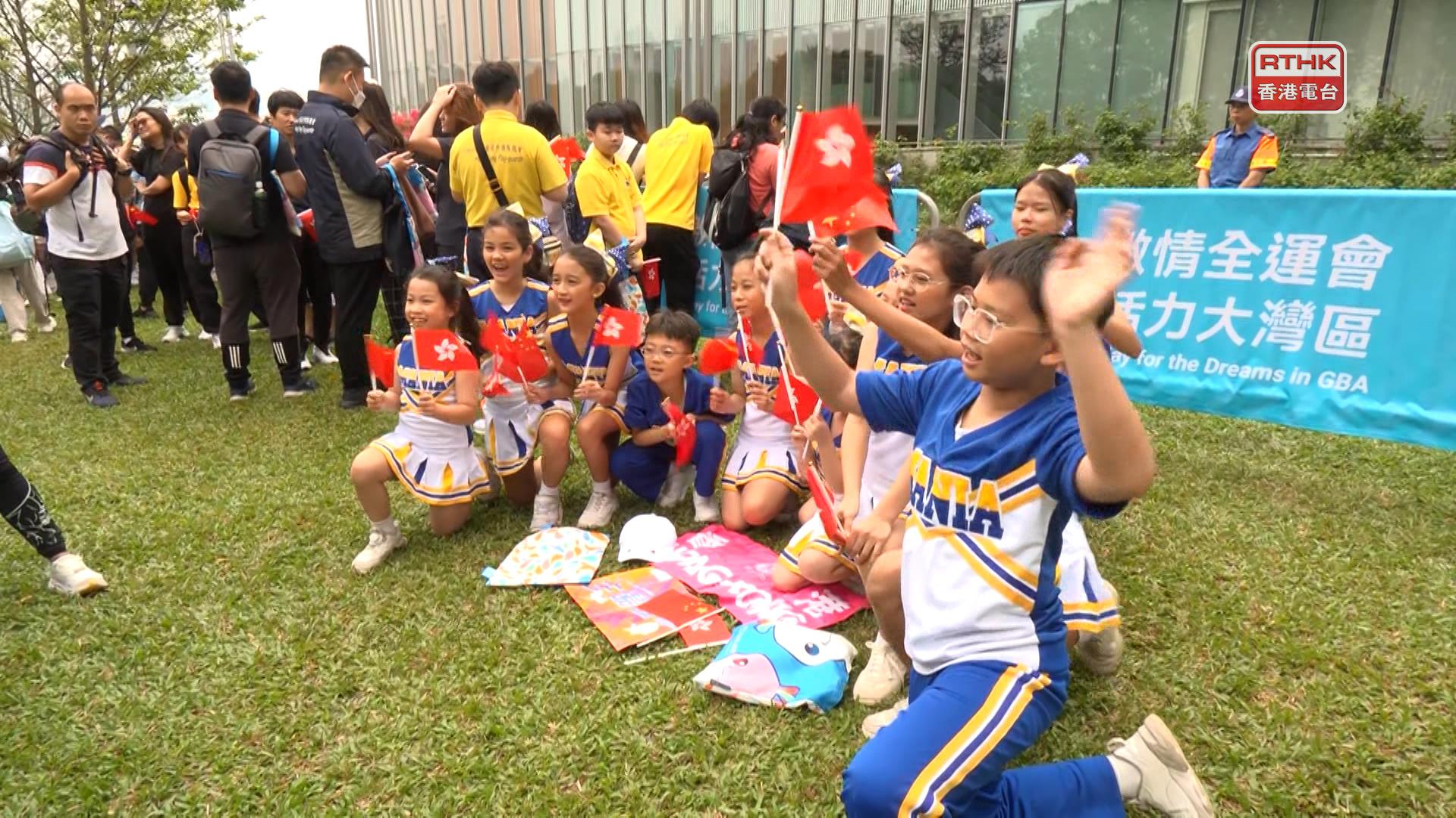 香港的火炬早上9時半在政府總部起步,不少市民和學生團體圍觀。有幼稚園學生身穿啦啦隊服飾打扮,手持國旗和區旗,為途經的火炬手吶喊打氣。