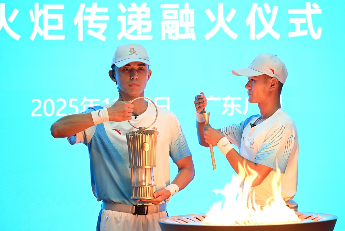 融火儀式下午約5時在廣州的廣東奧林匹克體育中心舉行,火種護衛隊將火種燈帶上台,再從火種燈取火點燃火炬,交予四個城市的代表參與融火儀式。