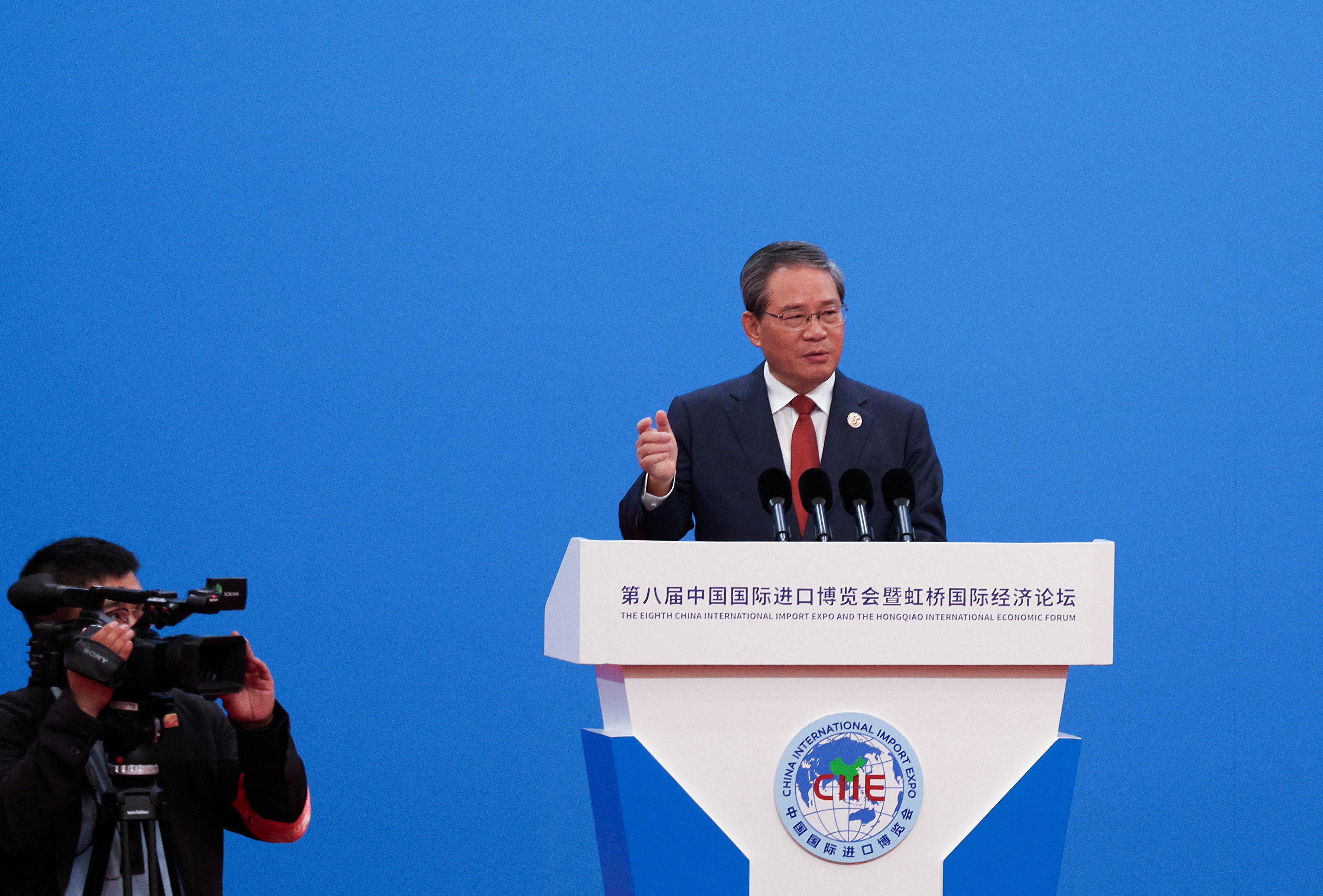 國務院總理李强在上海舉行的進博會開幕式致辭。 (路透社)