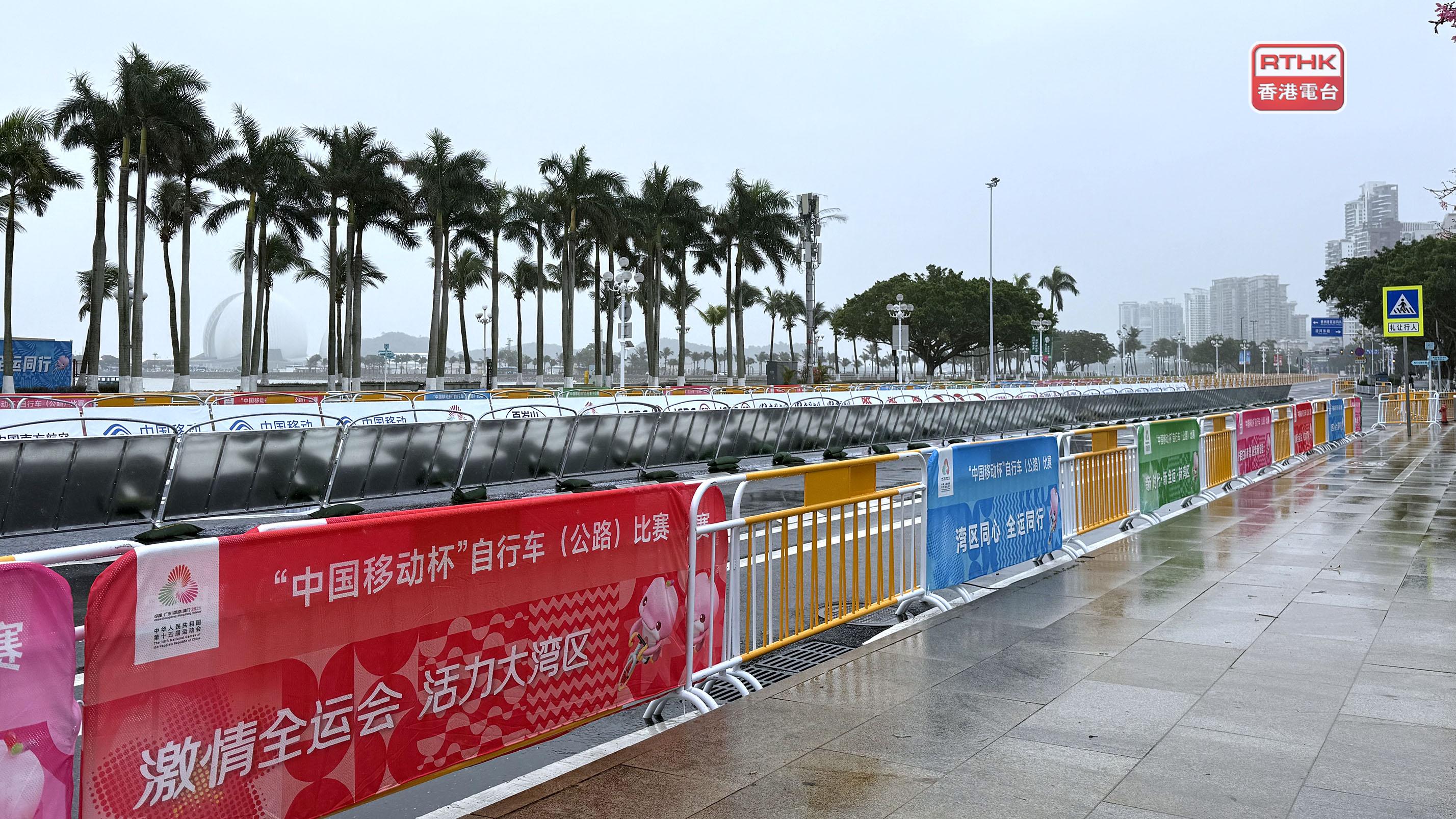 十五運會公路自行車男子個人賽明早舉行,是唯一橫跨粵港澳三地的競賽項目。賽事起點及終點均設在珠海市博物館,現場所見,附近一帶已封路,主舞台及賽道亦架設好,工作人員正為明日的賽事作最後準備。
