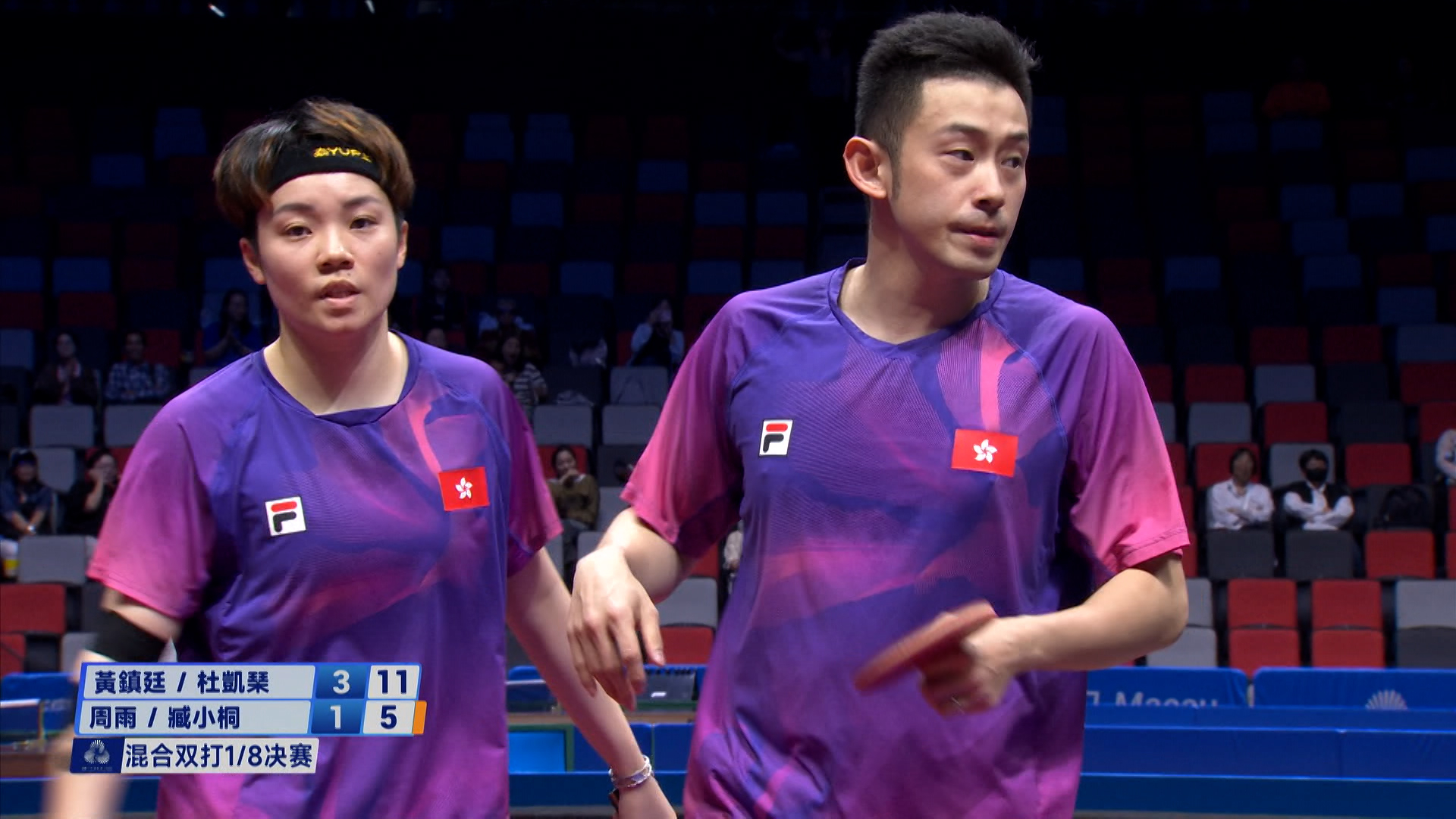 十五運會乒乓混雙項目,港隊組合黃鎮廷及杜凱琹,16強擊敗河北組合晉級8強。