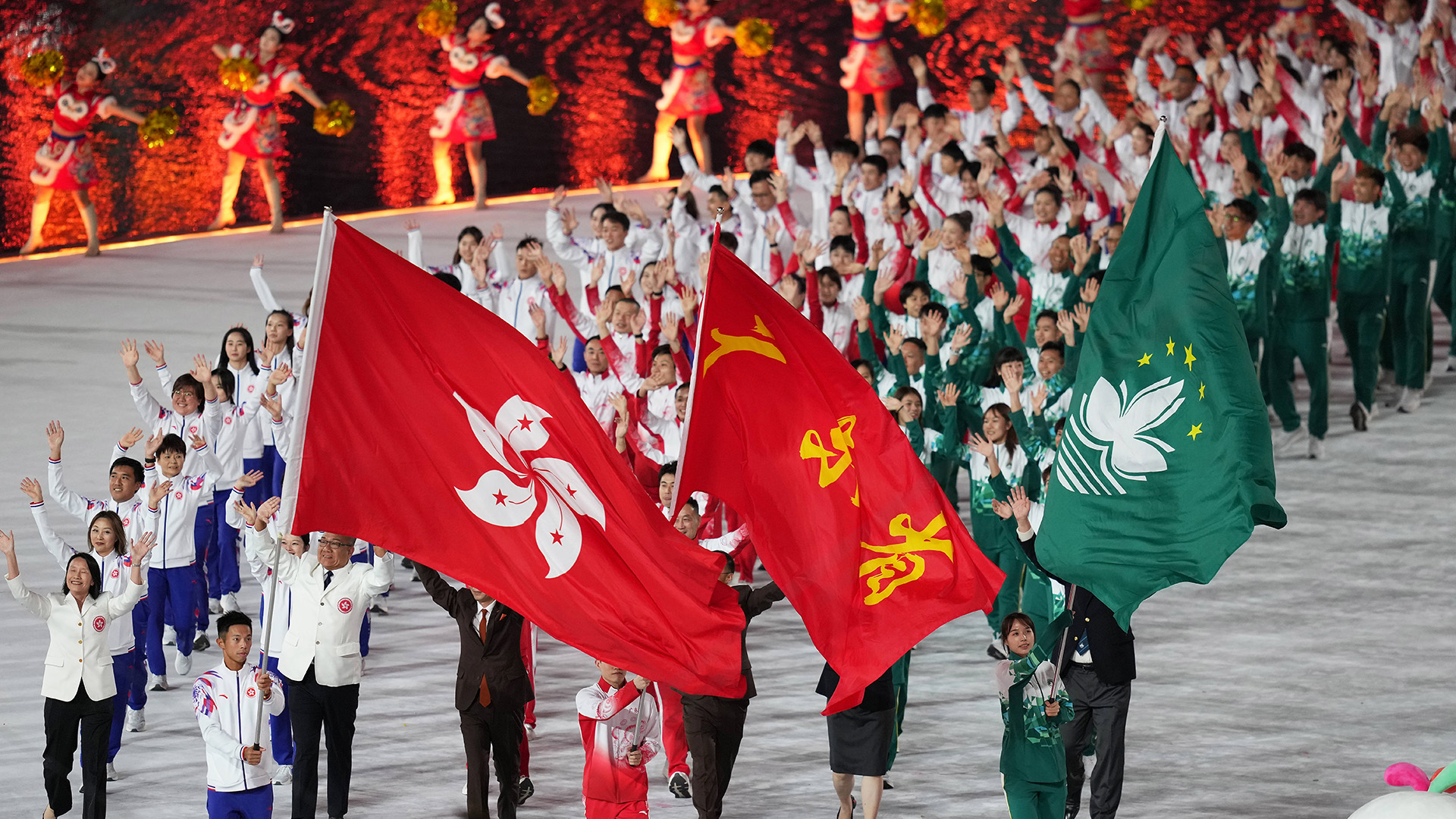 各支參賽代表團其後逐一進場,東道主廣東、香港和澳門體育代表團一起登場,賽艇運動員趙顯臻擔任港隊持旗手。習近平不時向代表團揮手致意。