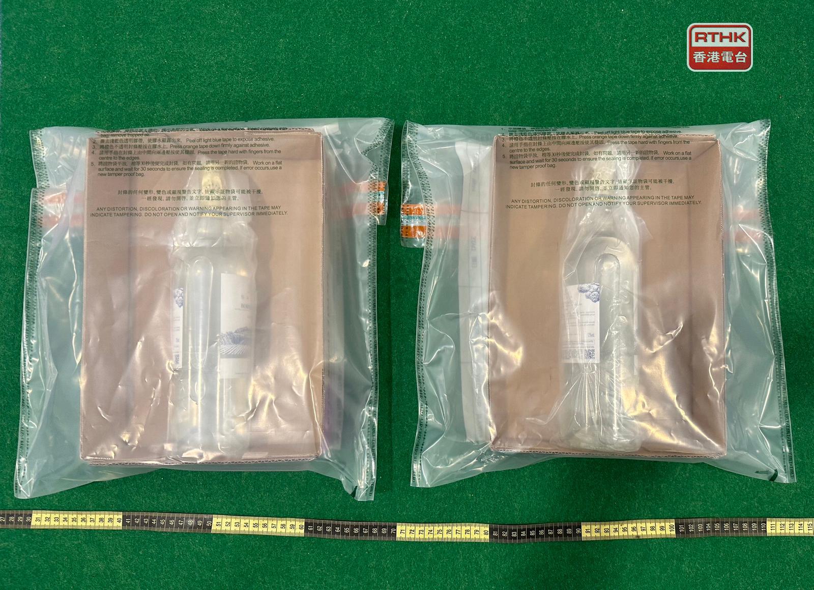 海關在機場偵破一宗販毒案件,檢獲約1.5公斤、估計市值約80萬元懷疑液態冰毒。