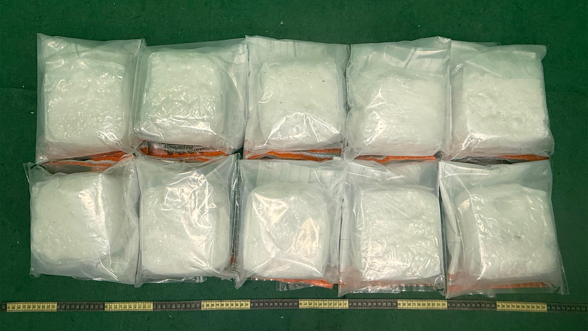 海關前日在機場查驗這批空運貨物,在17箱貨品中,發現其中2箱混有急凍海鮮的紙箱藏有約10公斤懷疑冰毒,一名37歲懷疑涉案的收貨男子被捕,海關昨日在深水埗跟進調查,拘捕另一名懷疑涉案的59歲女子。