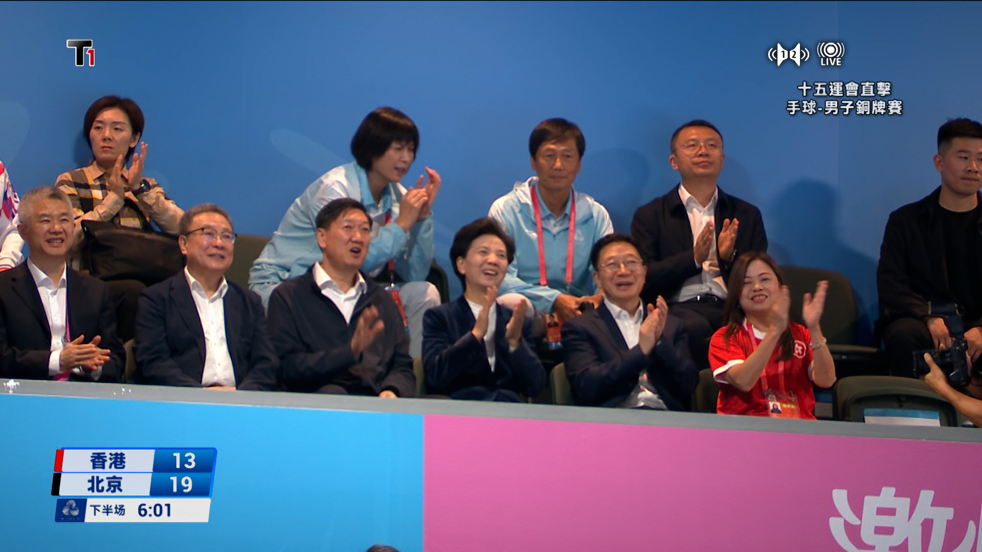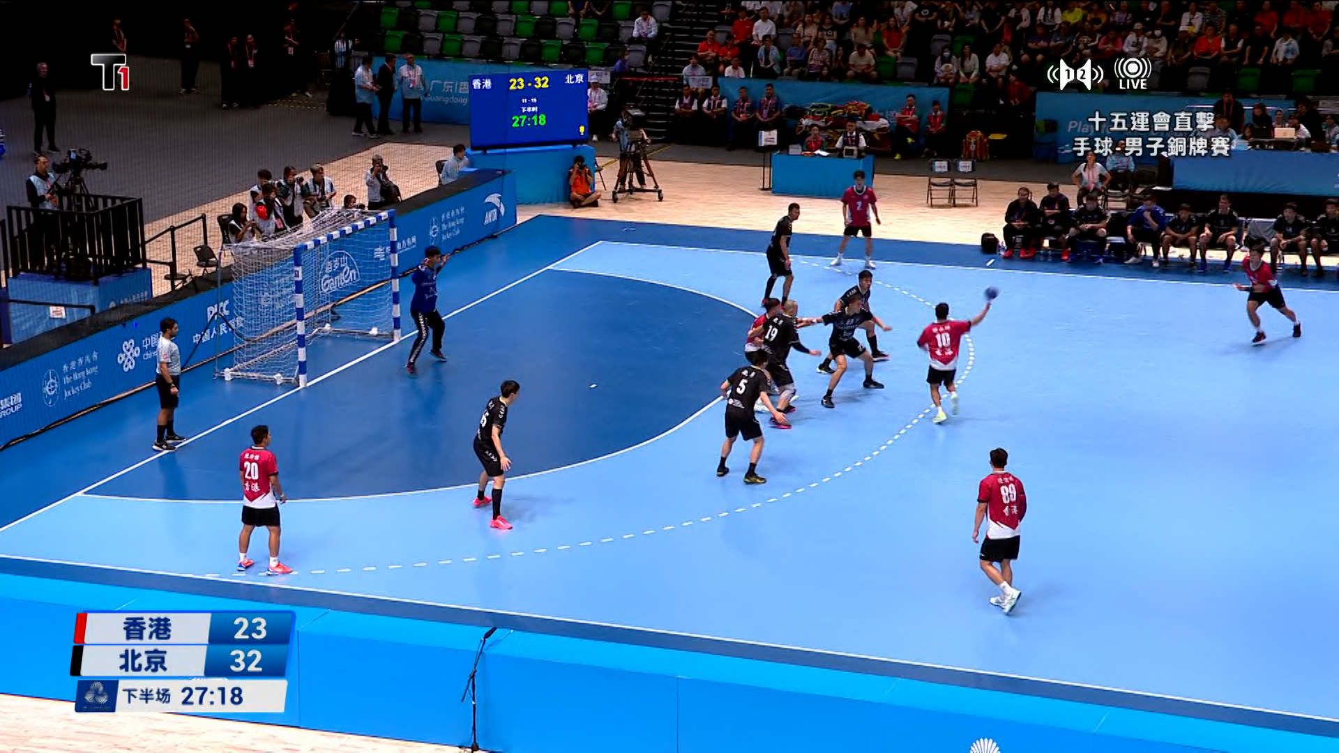 在啟德體藝館舉行的十五運會男子手球項目,香港隊在銅牌賽,以25:33不敵北京,得到第四名,無緣獎牌。