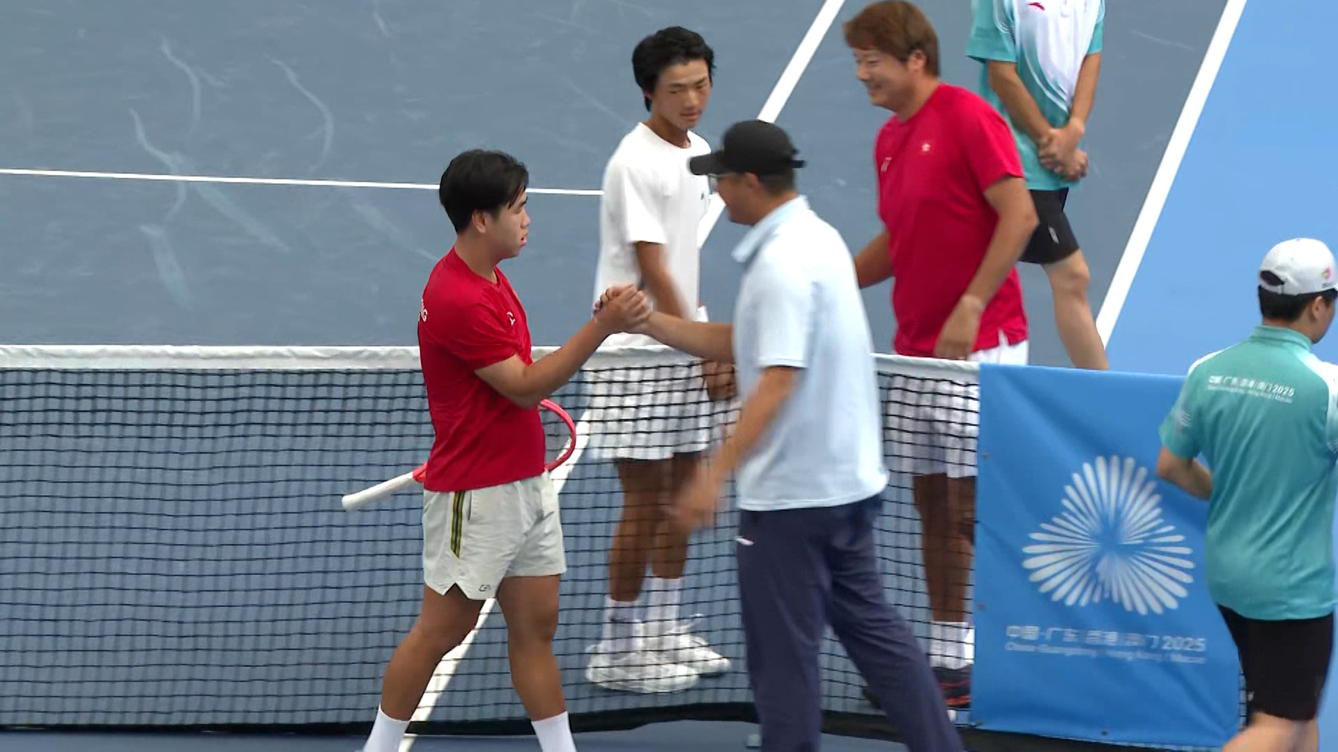 賽事採取三場兩勝制,頭兩場是單打,第三場是雙打。歷史性躋身這個項目4強的港隊,首場單打派出程銘燦打頭陣,面對江蘇的徐曠清,結果直落兩盤1:6,0:6輸給對手,港隊場數先落後。