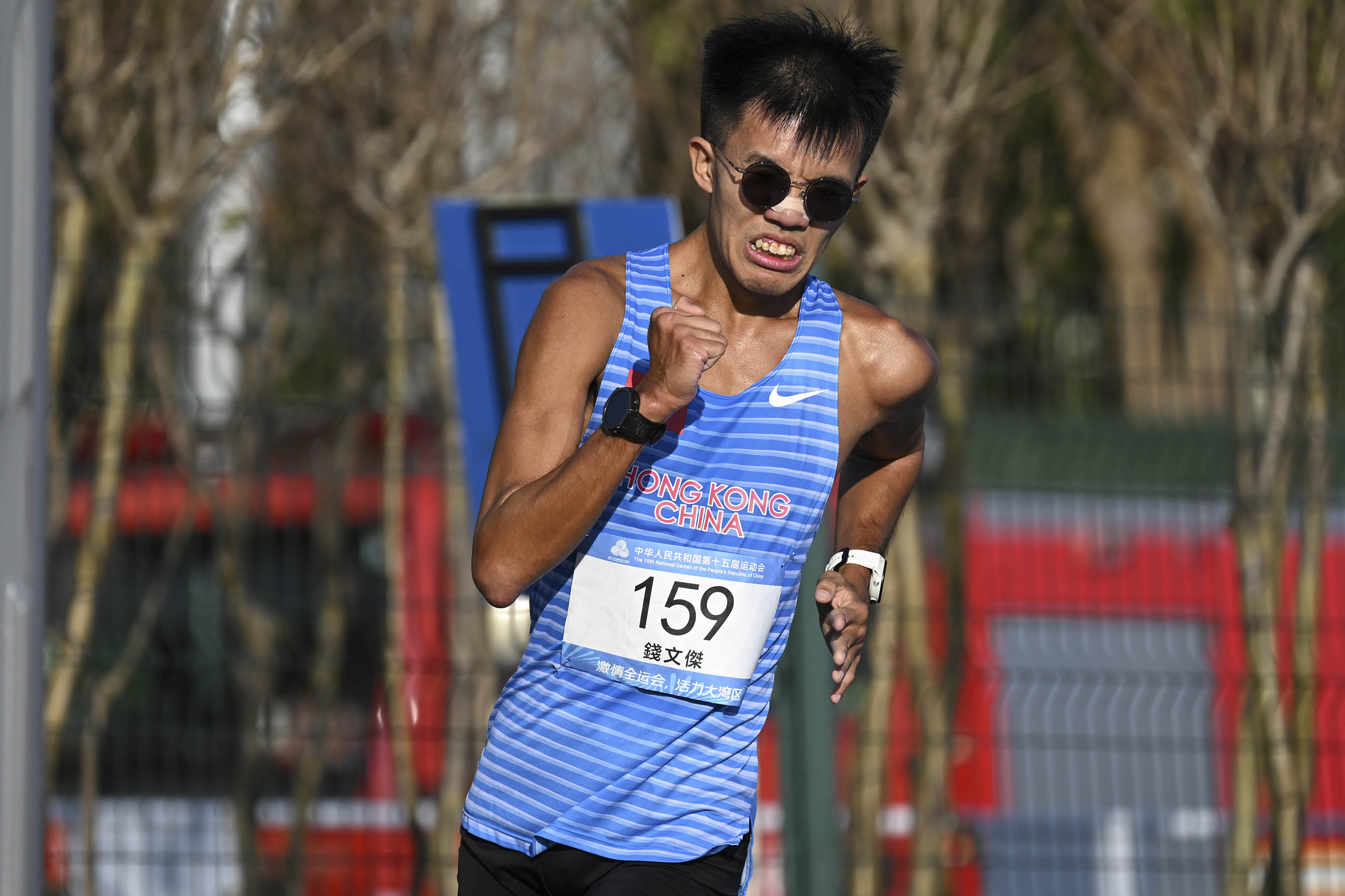 十五運會男子20公里競走決賽,港隊代表錢文傑以1小時33分45秒,第32名完成賽事。