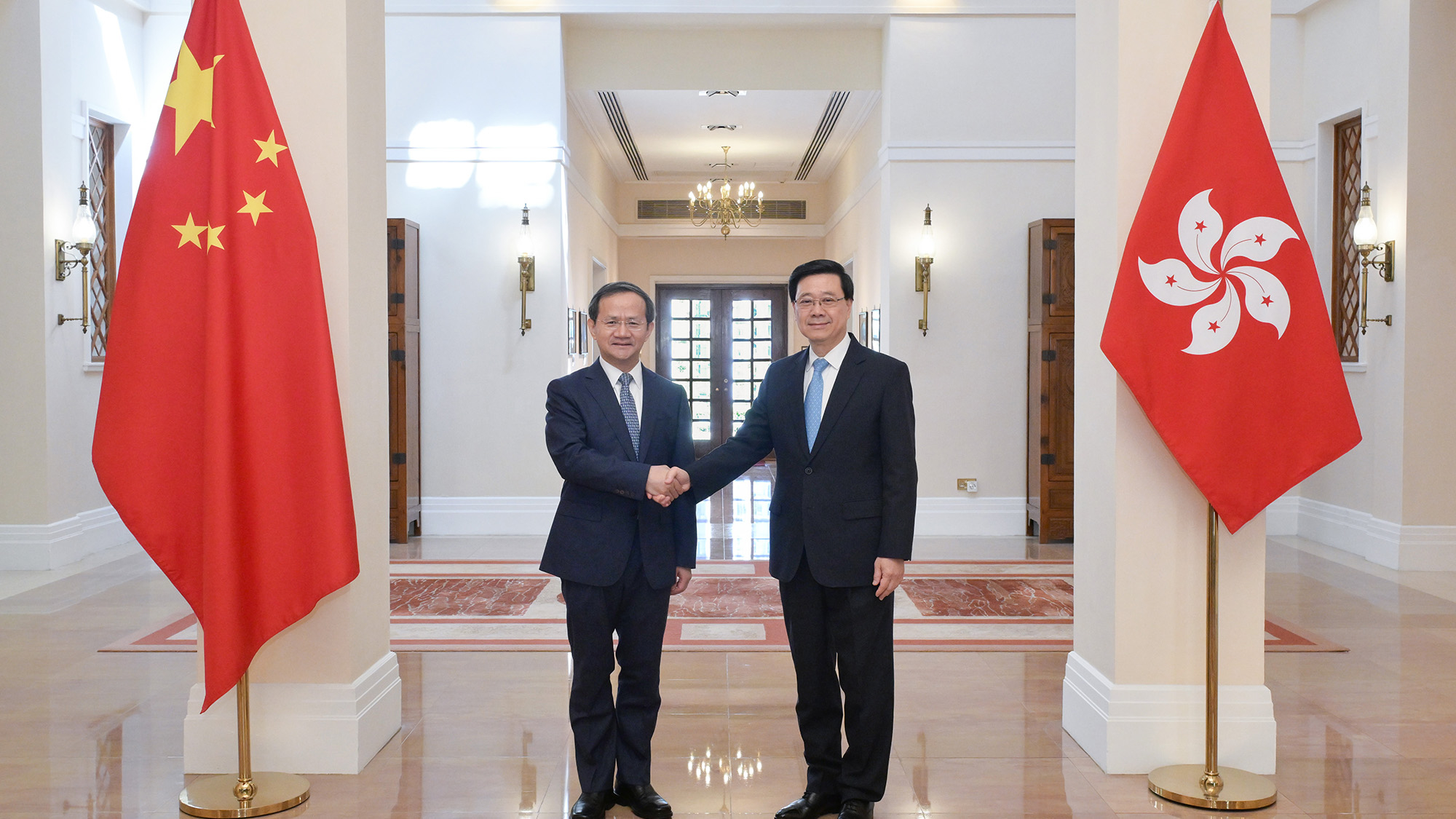 行政長官李家超在禮賓府與北京市市長殷勇會面,就深化京港合作交流意見。李家超說,香港在「一國兩制」下享有國家機遇和國際機遇的雙重疊加優勢,全力深化國際交往合作,積極發揮「引進來、走出去」的重要雙向平台作用。