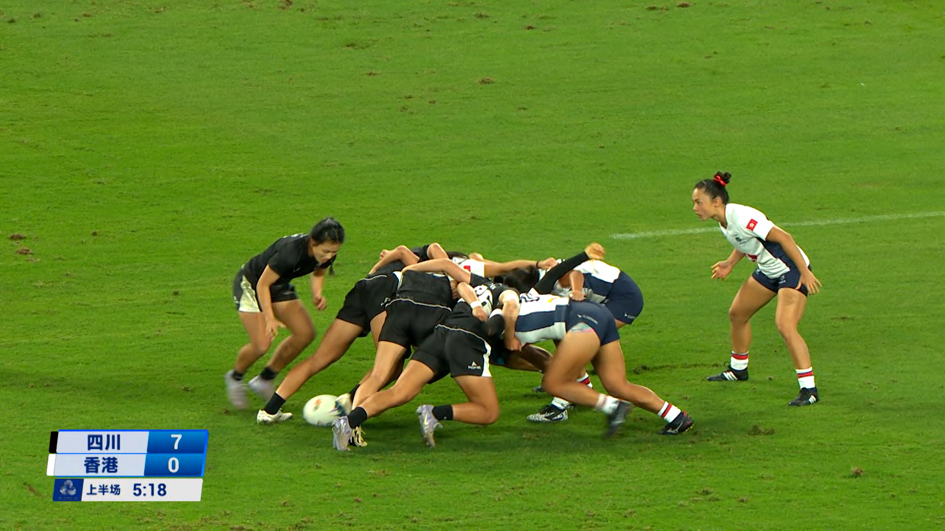港隊在下半場成功壓上前場,保持控球權及尋找進攻空間,苗頌雅及陳穎先後達陣取分,河春花射入其中1個附加罰球,港隊追近比數至12:19,四川隊守到完場獲勝。
